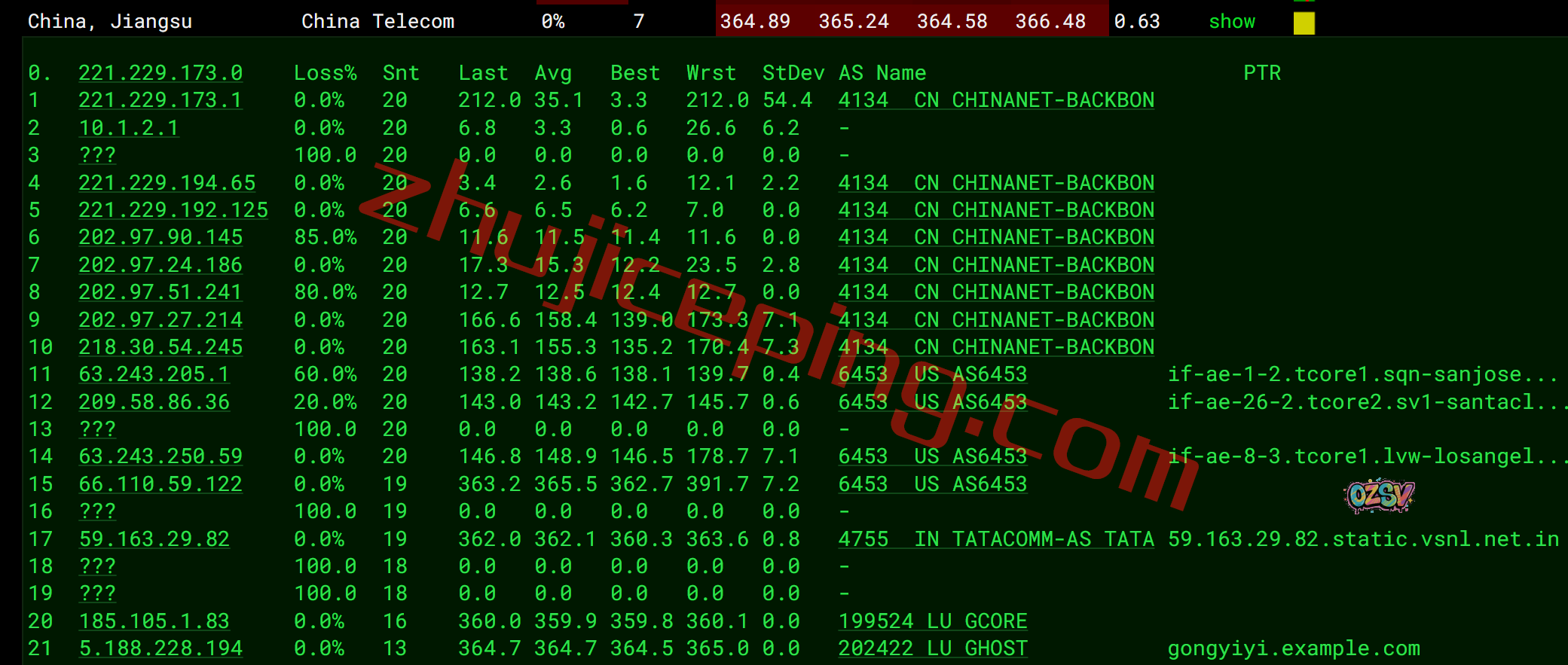 电信回程:走tata直接去了日本然后去美国圣何塞/洛杉矶,从电信圣何塞/洛杉矶节点直连回国