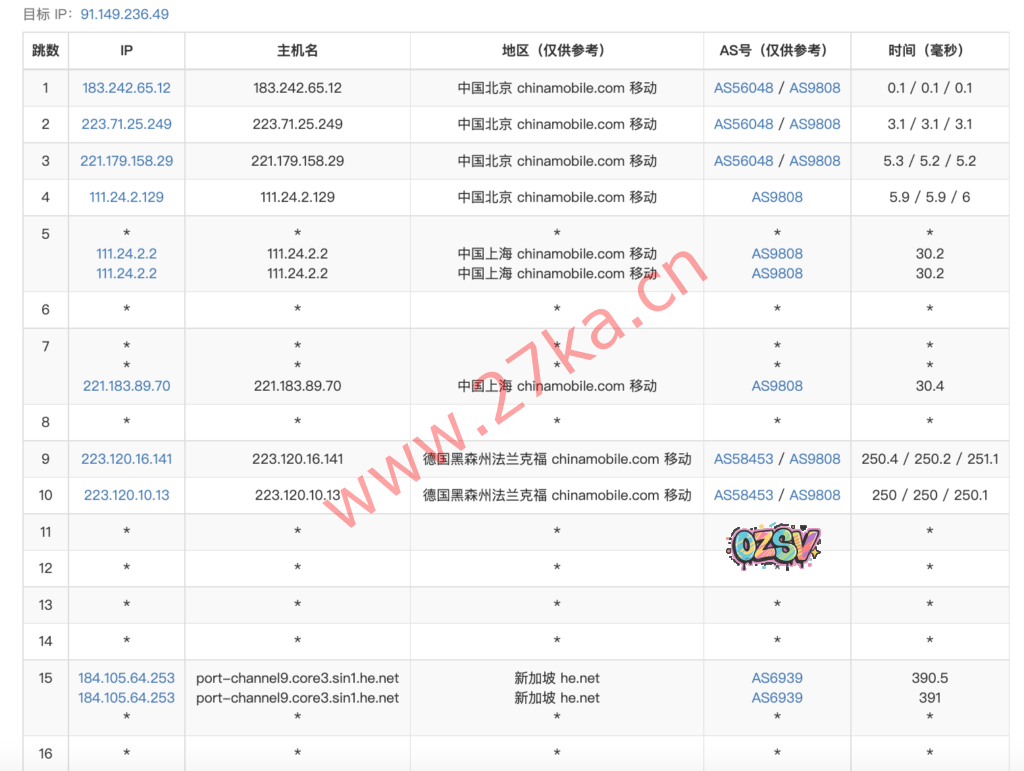 | 移动线路 | 39 | 广东广州(移动云) 150.6 毫秒 | 北京(移动) 399.9 毫秒 | 267.1 毫秒 |