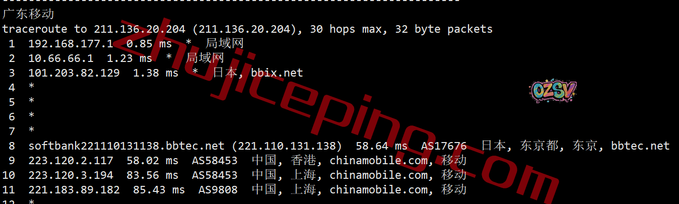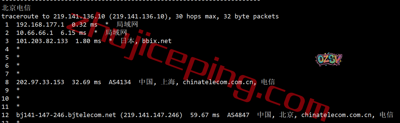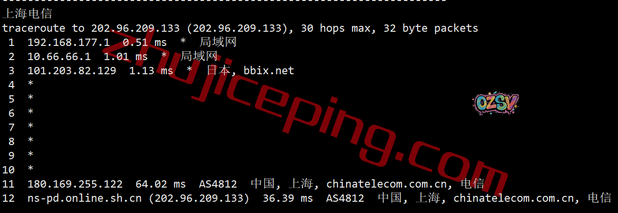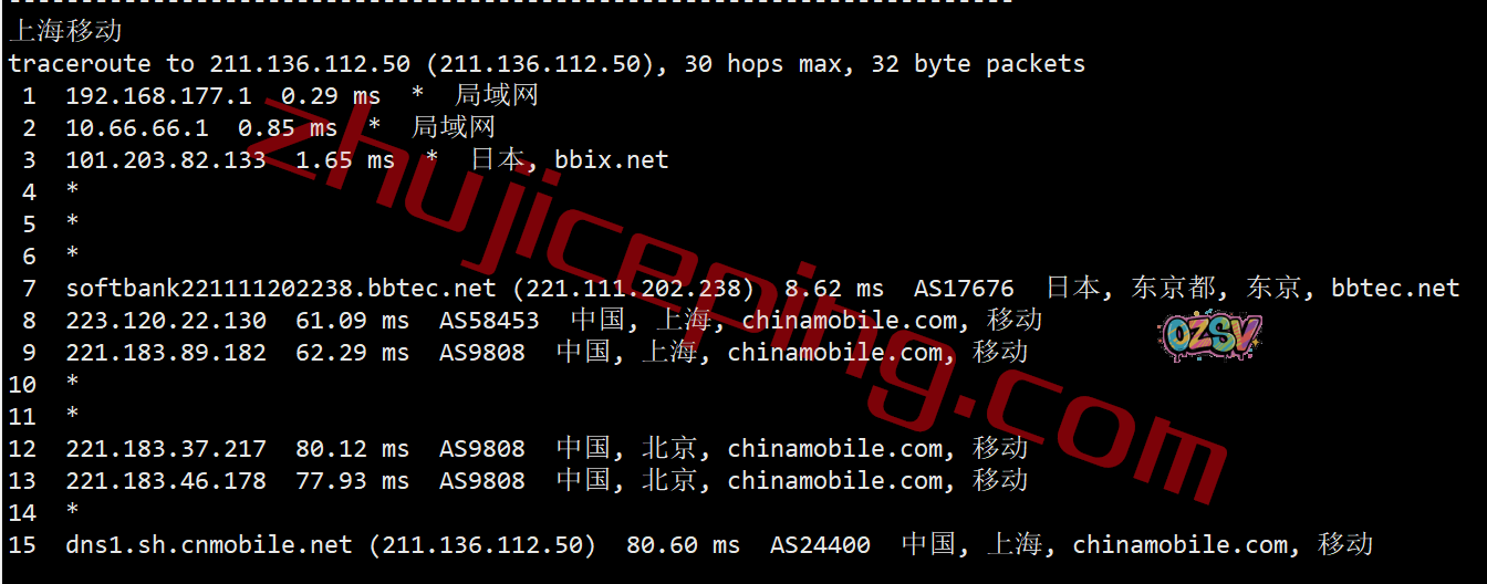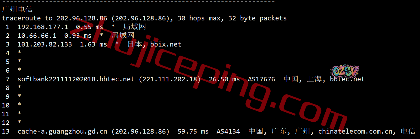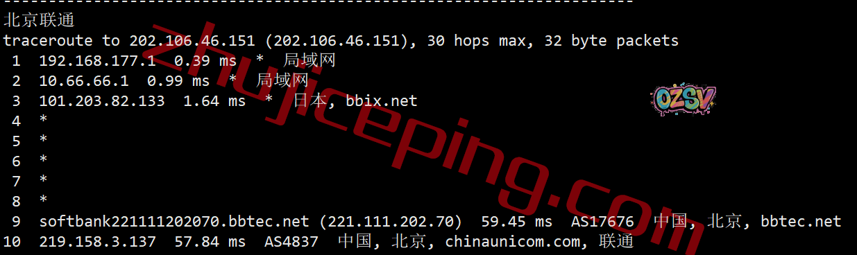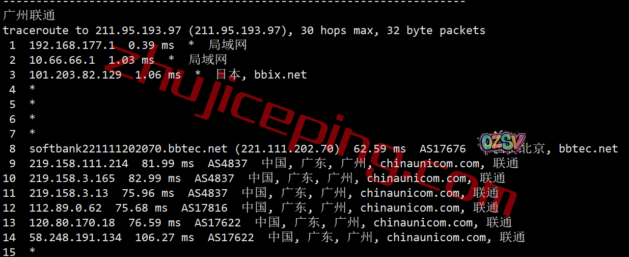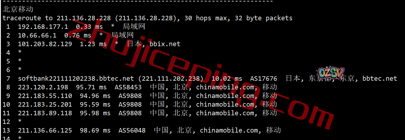 电信回程:走BBIX(软银的)数据交换中心回来,非直接走软银线路