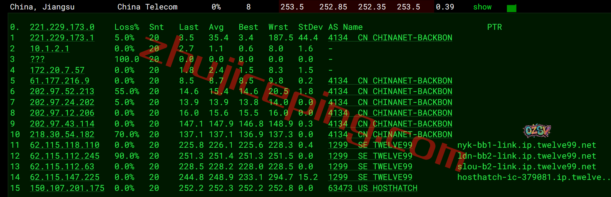 电信去程:直连电信圣何塞节点,然后走twelve99去纽约出海去英国伦敦
