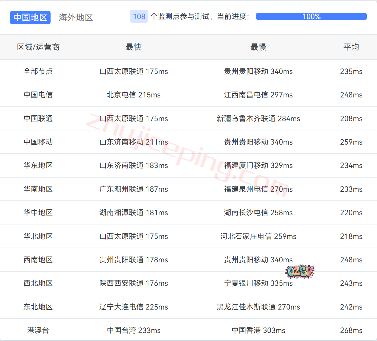 从上面的几张图不难看出带宽还是很充裕的,但是就是只适合跑欧美,在亚太地区效果差远了。