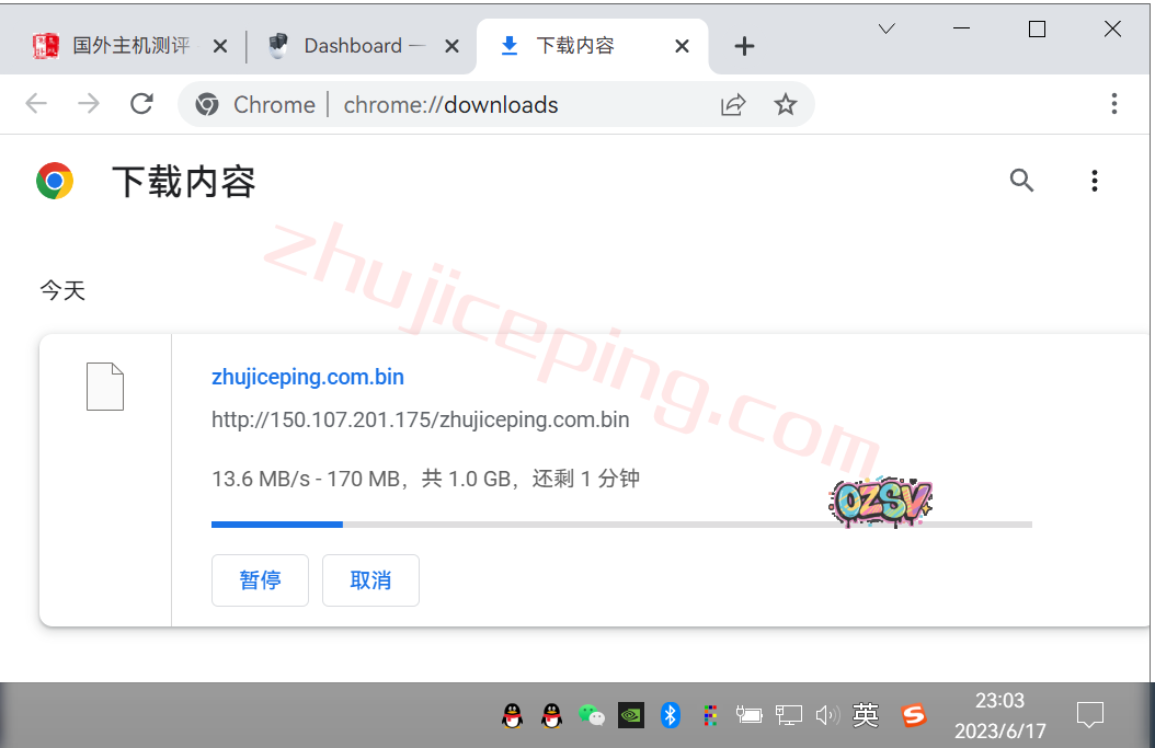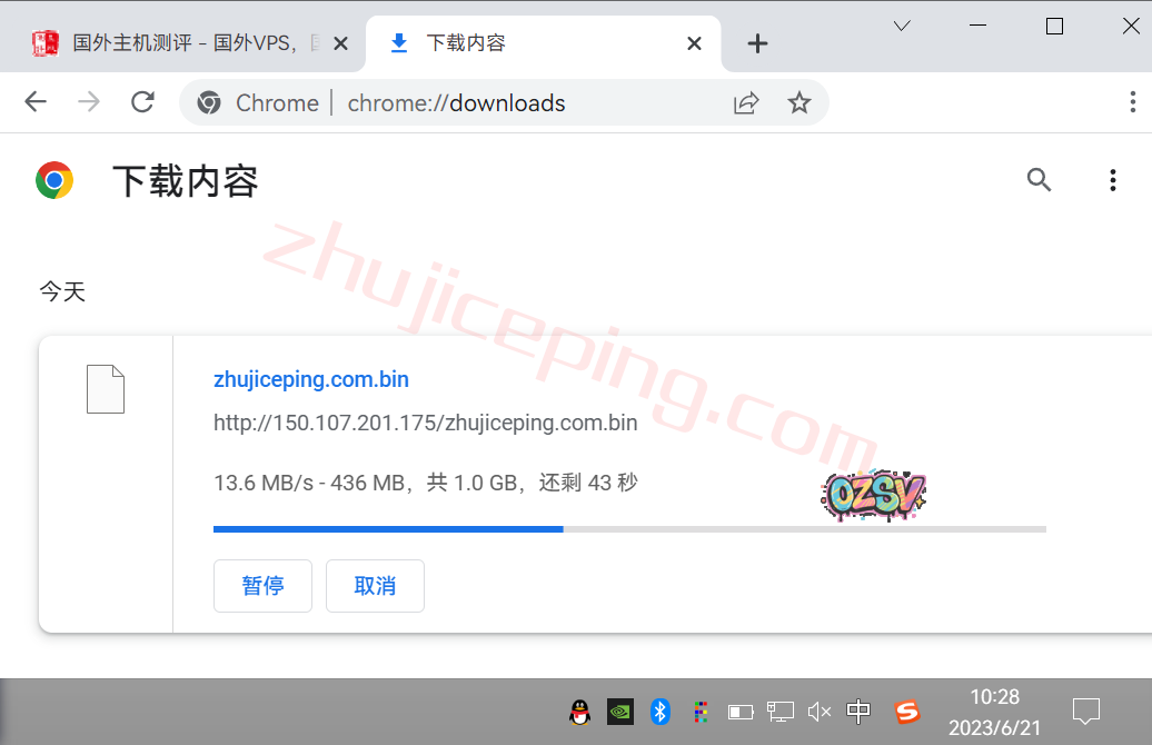 存放在测试小鸡上面的文件,广州联通家庭带宽,直接浏览器下载,速度如下:
