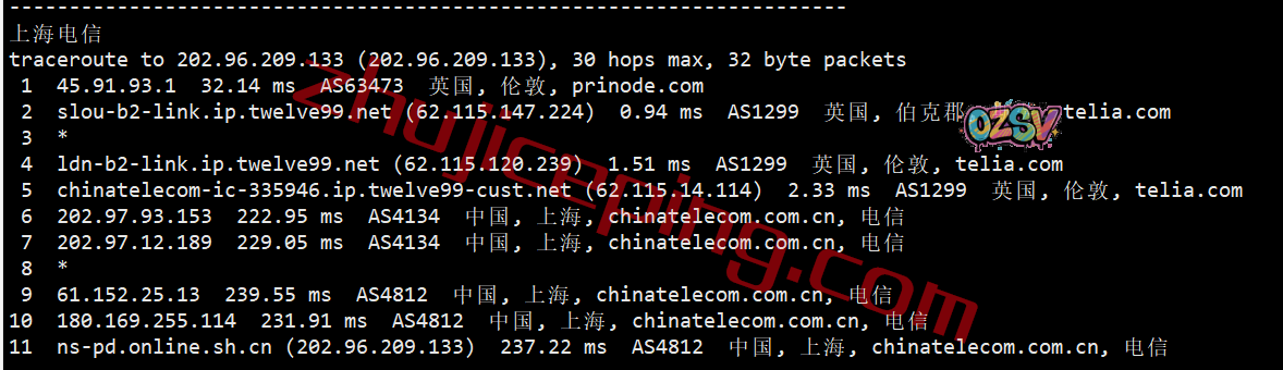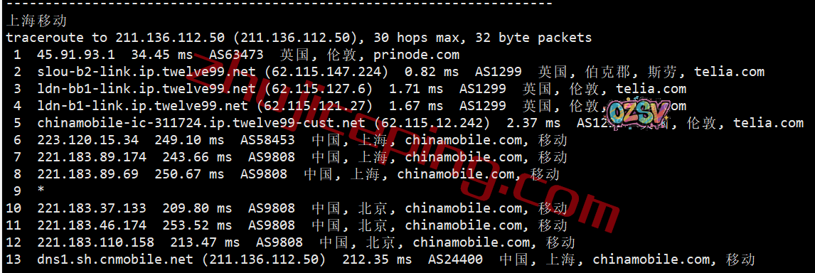 上海方向:走telia经过移动与telia在伦敦的pop出来后接移动自己的伦敦节点,然后直连回国