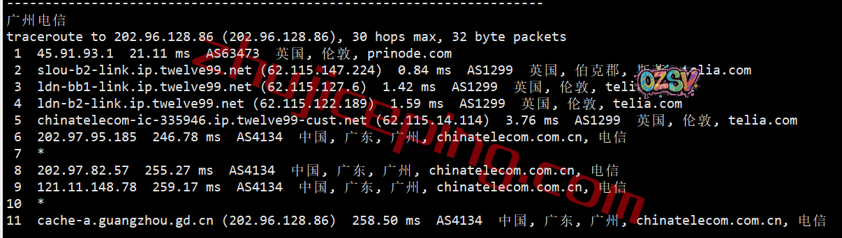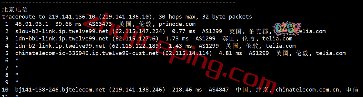 电信回程:走telia,从电信与telia在伦敦的pop直连回国