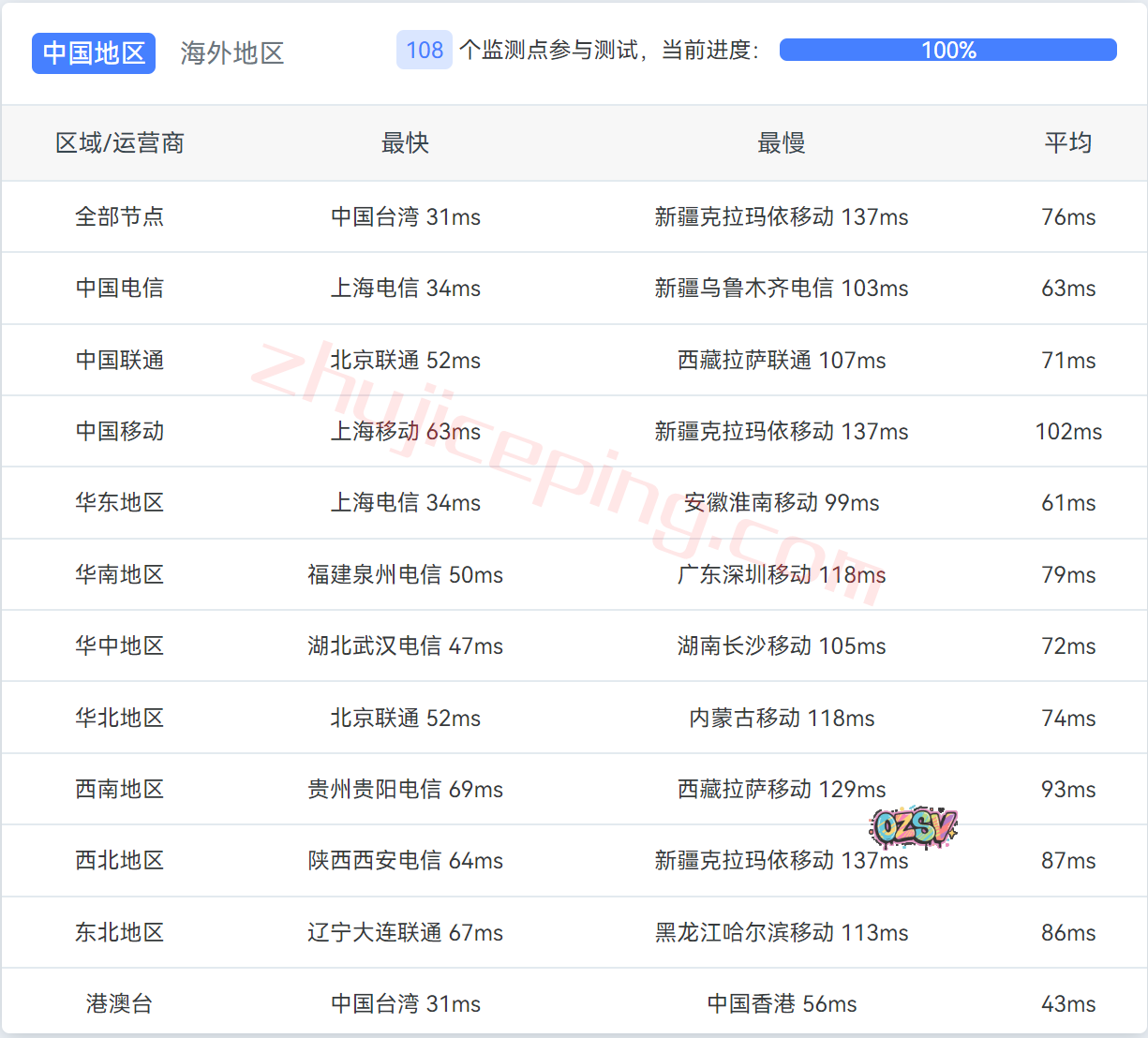 再看看在晚高峰骨干网阻塞时候的测试情况:
