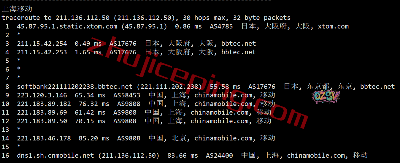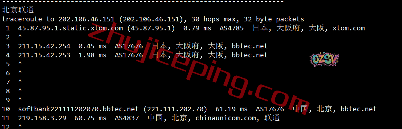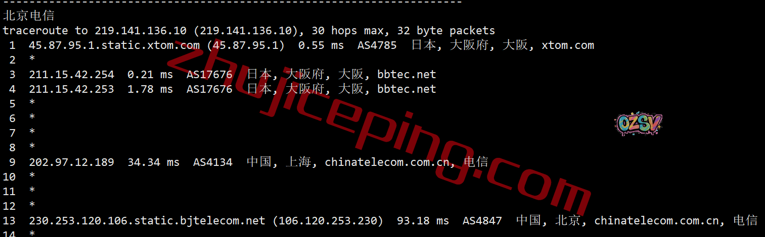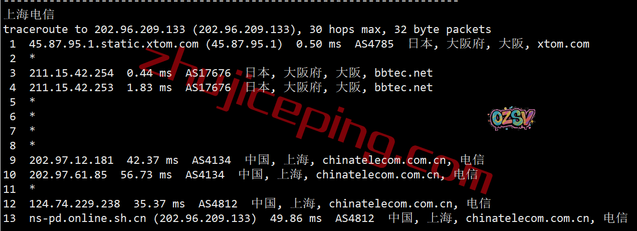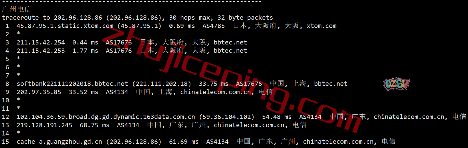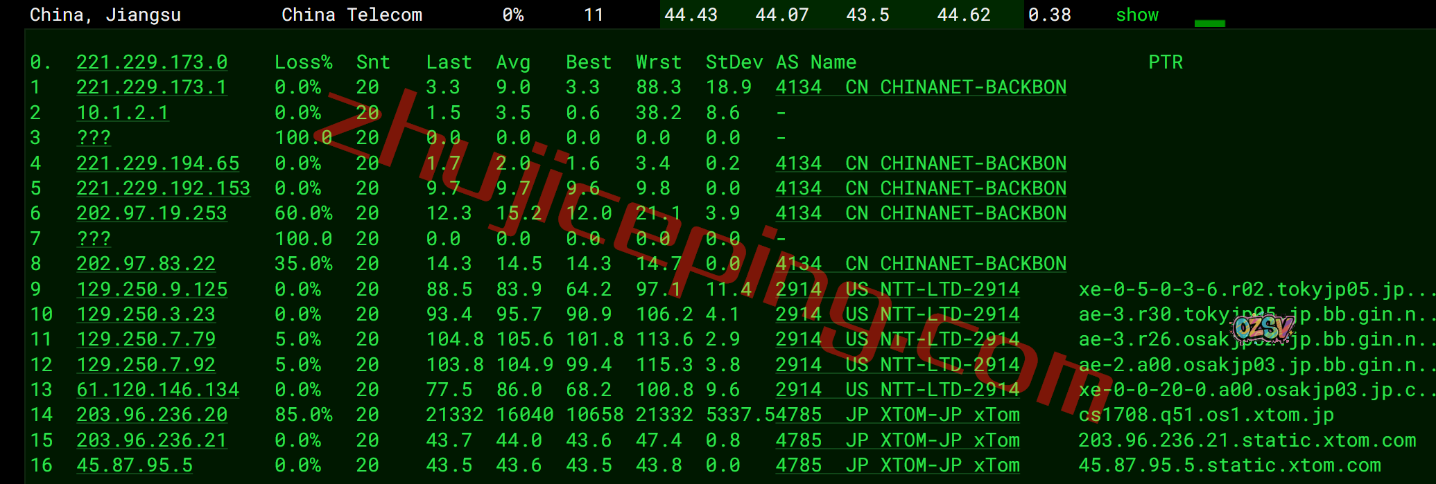 电信去程:骨干网接NTT去日本东京然后去大阪