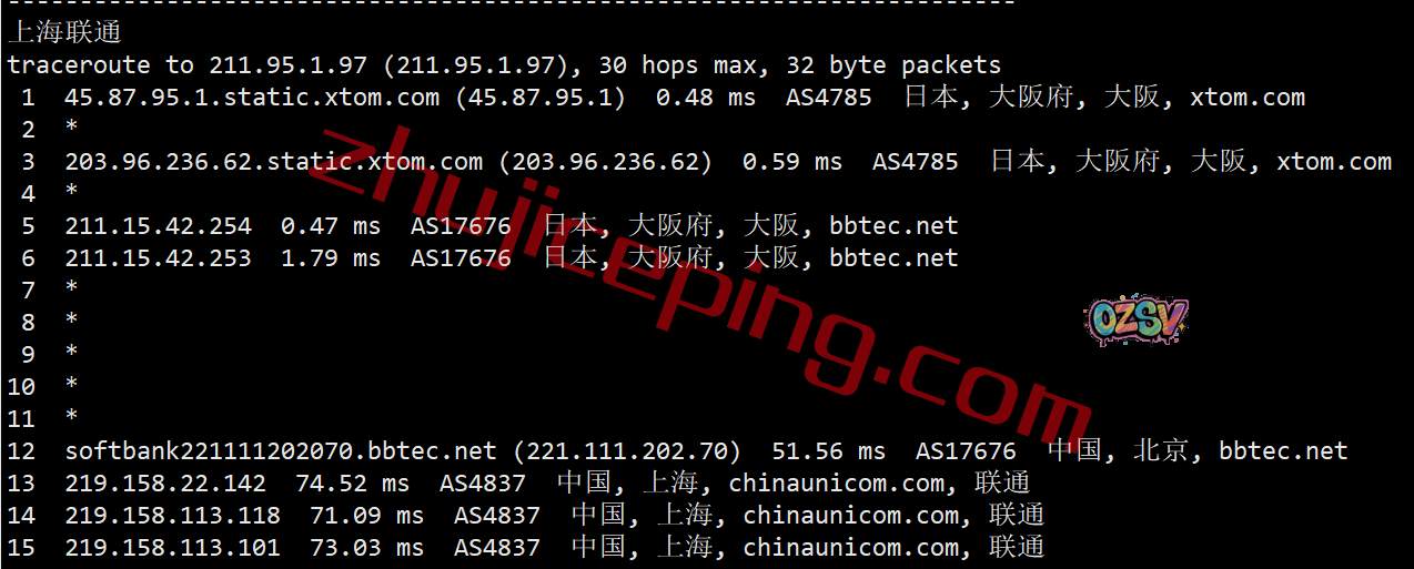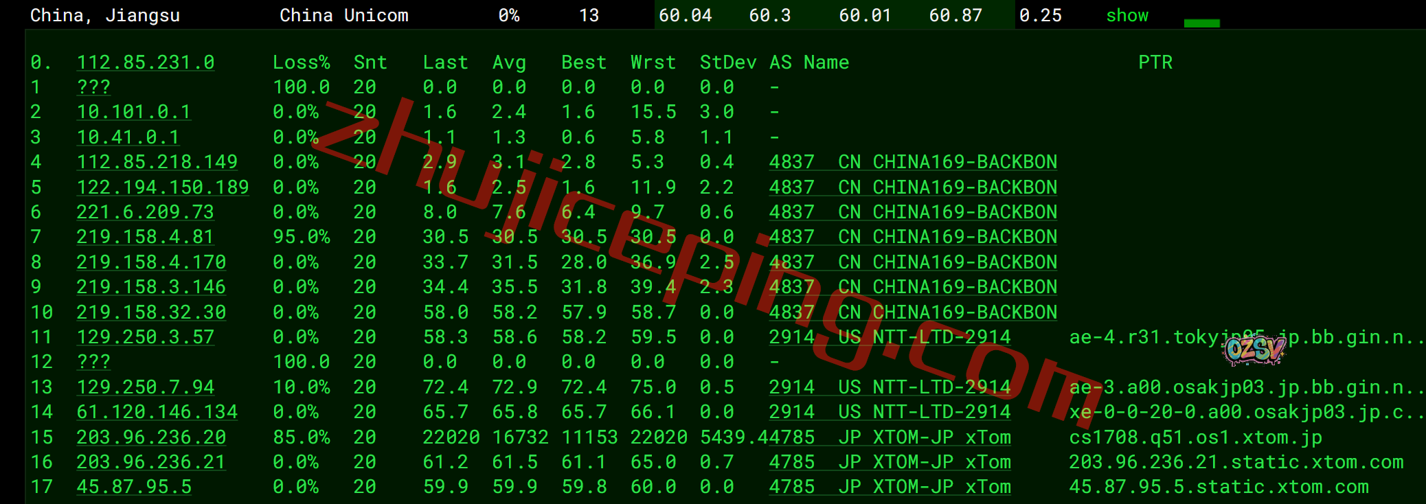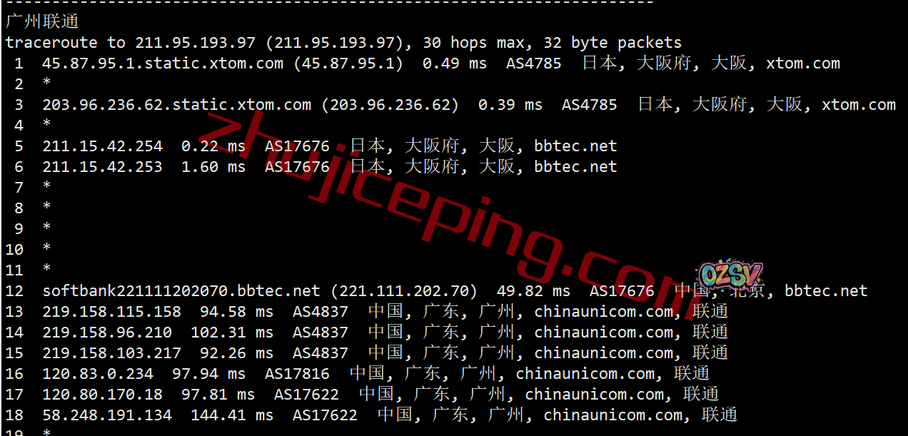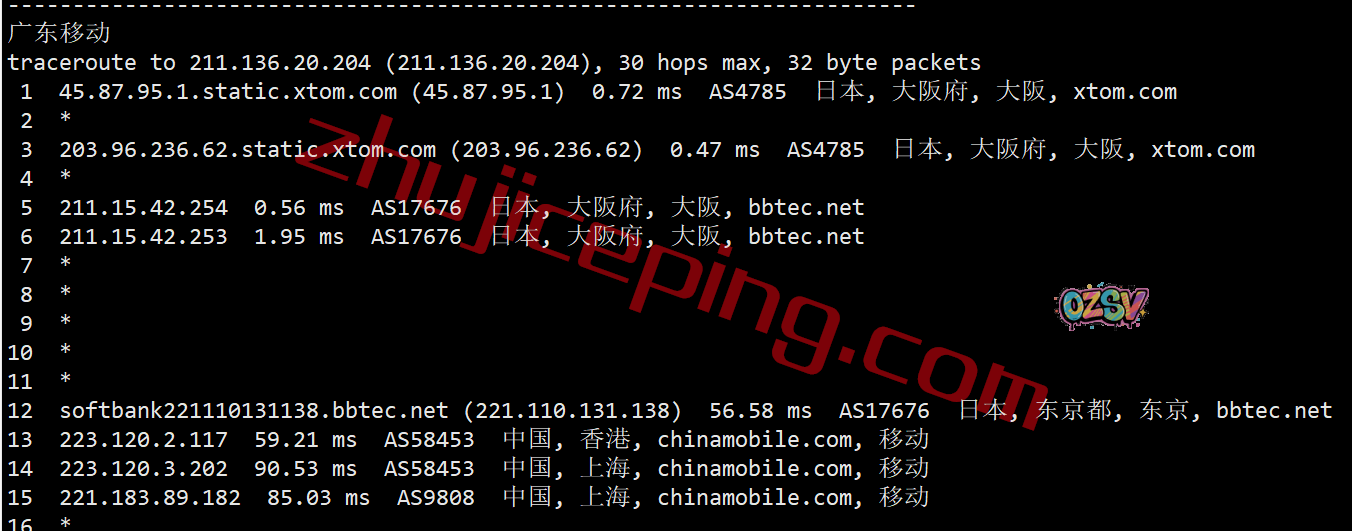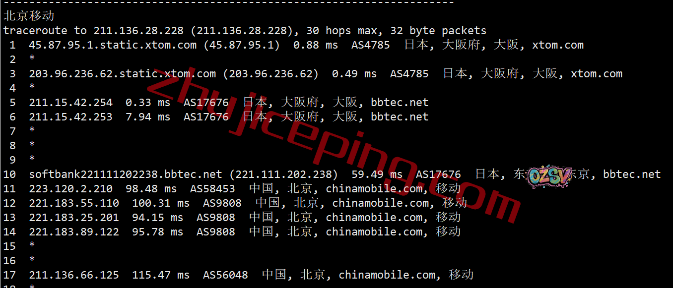 电信去程:骨干网接NTT去日本东京然后去大阪