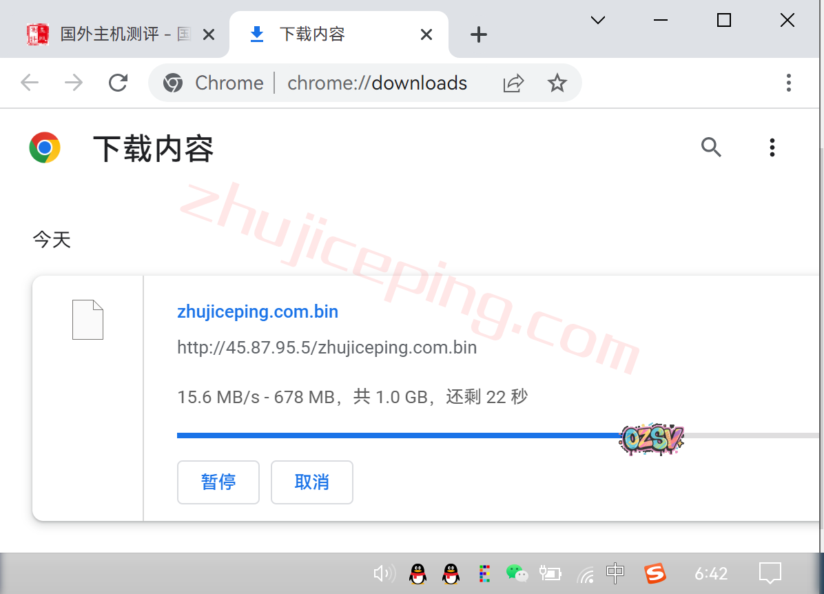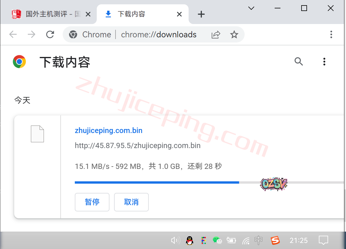 存放在测试小鸡上面的文件,广州电信家庭带宽直接用浏览器下载,大致数据如下: