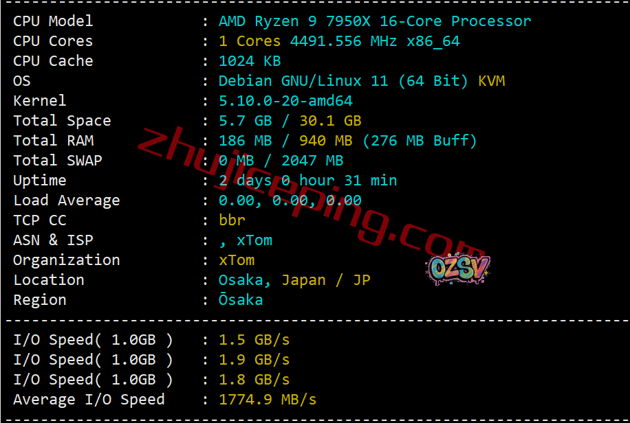 zgocloud(已经改名zgovps)这个新VPS商家本站最近介绍过其日本vps,默认是三网强制走日本软银线路,而且是AMD Ryzen 7950X+DDR5+NVMe高性能平台。主机测评的QQ群内有些人一直在问效果怎么样?适合适合国内的网络使用?这里还是直接贴出站长自己测试的数据吧,仅供大家参考!