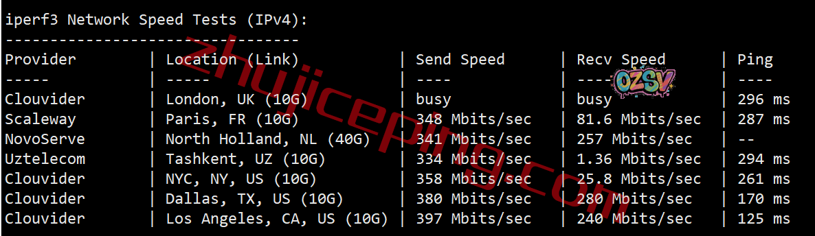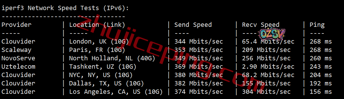 iperf3继续测试欧美节点,注意是IPv6环境下: