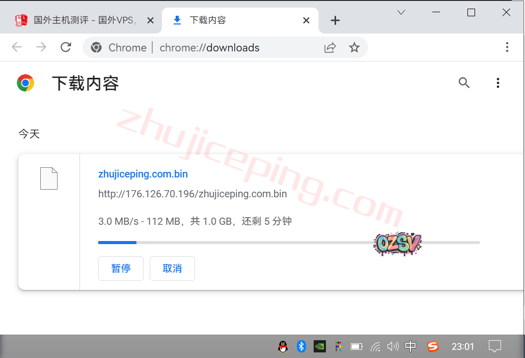 存放在测试小鸡上面的文件,广州联通家庭带宽,直接浏览器下载大致速度如下: