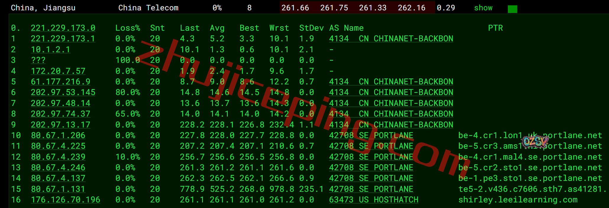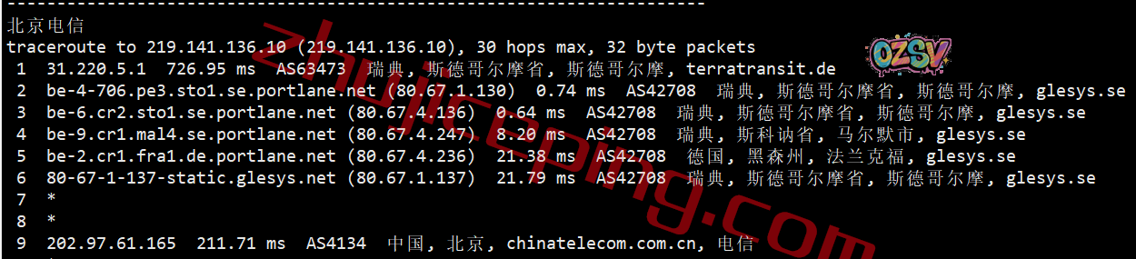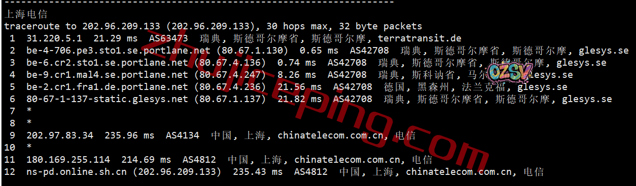电信回程:走portlane经过德国后再走glesys.net回中国