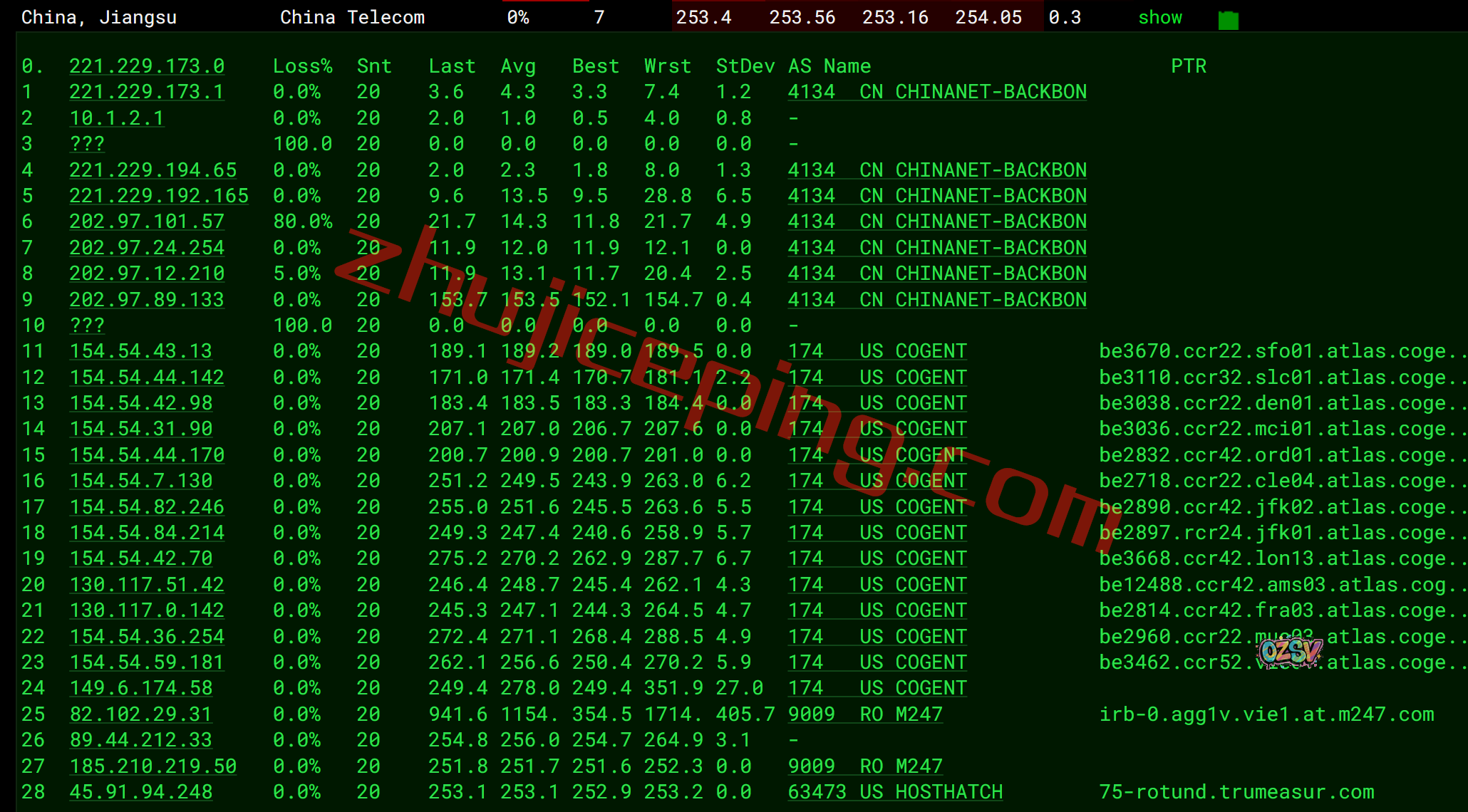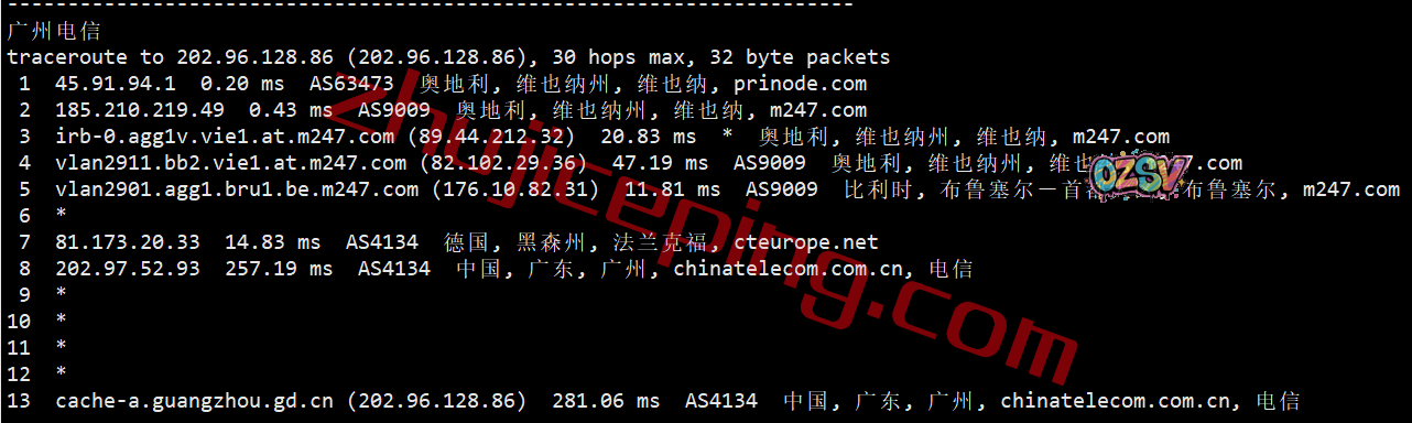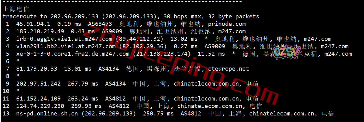 电信回程:走M247经过德国,从电信德国节点直连回国