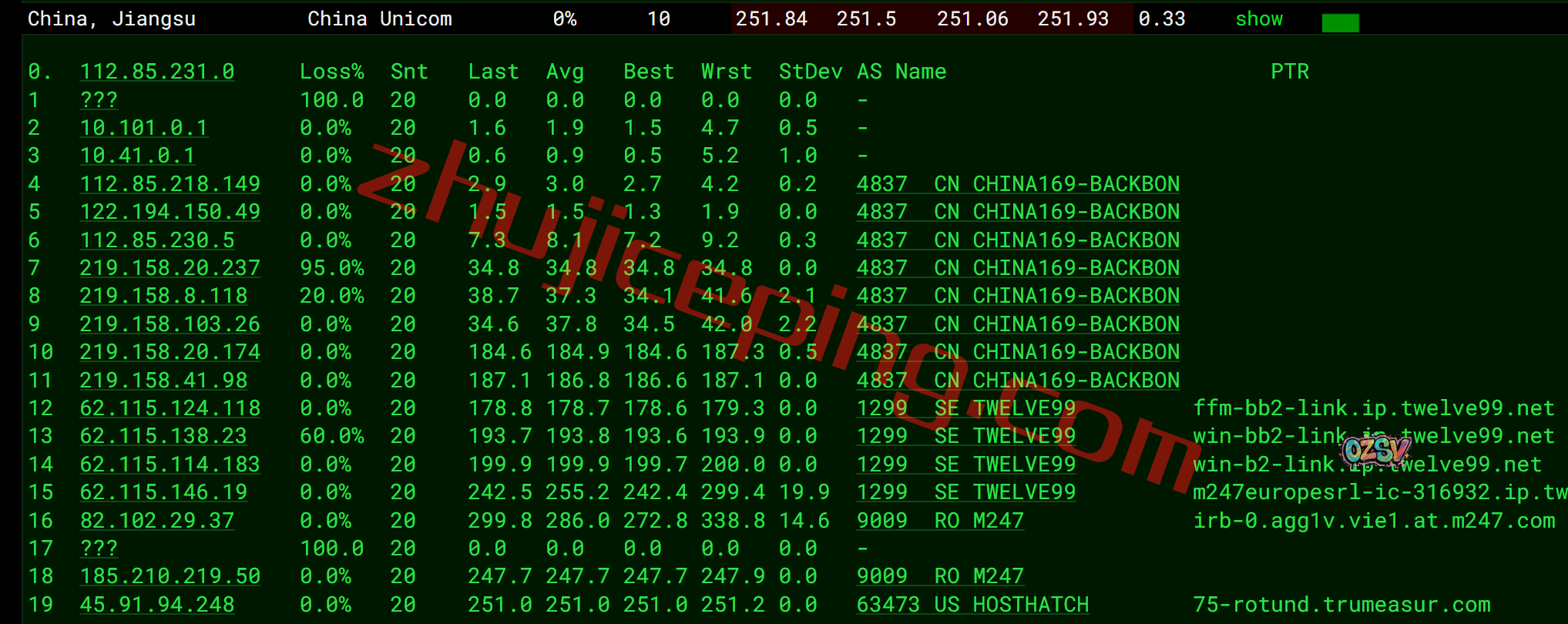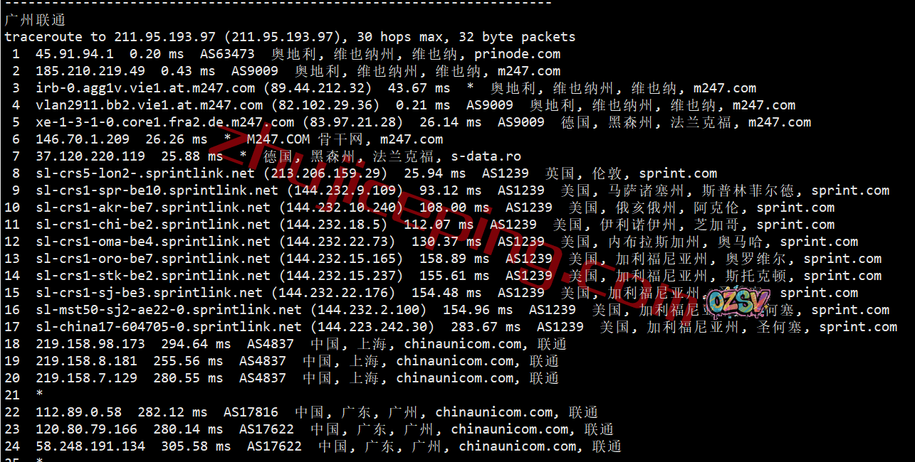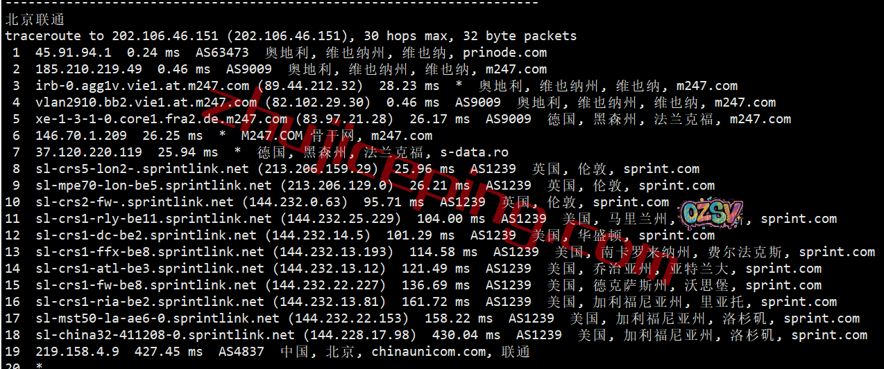 联通去程:直连联通德国法兰克福节点然后走twelve99去奥地利