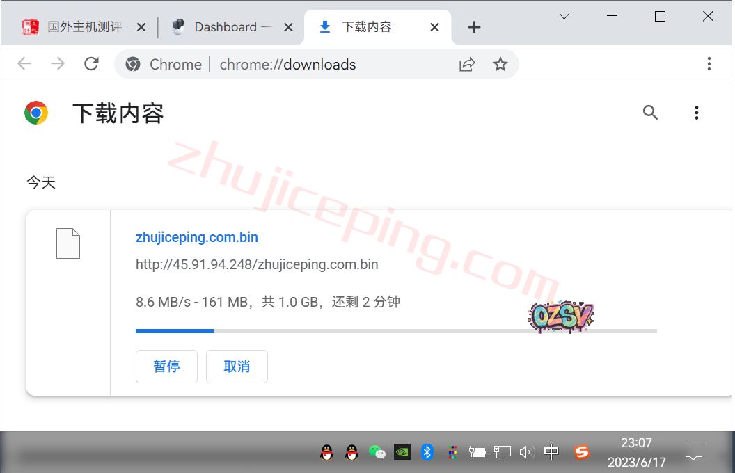存放在测试小鸡上面的文件,广州联通晚高峰直接用浏览器下载,大致速度: