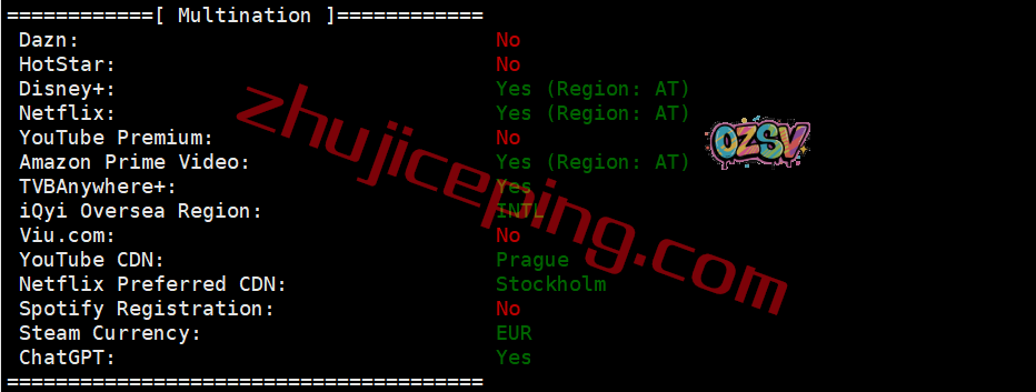 网络方面,大家都当做一个国际线路的奥地利VPS就好了,没有惊喜,而且部分路由还绕道了美国,IP貌似能解锁netflix、chatgpt…