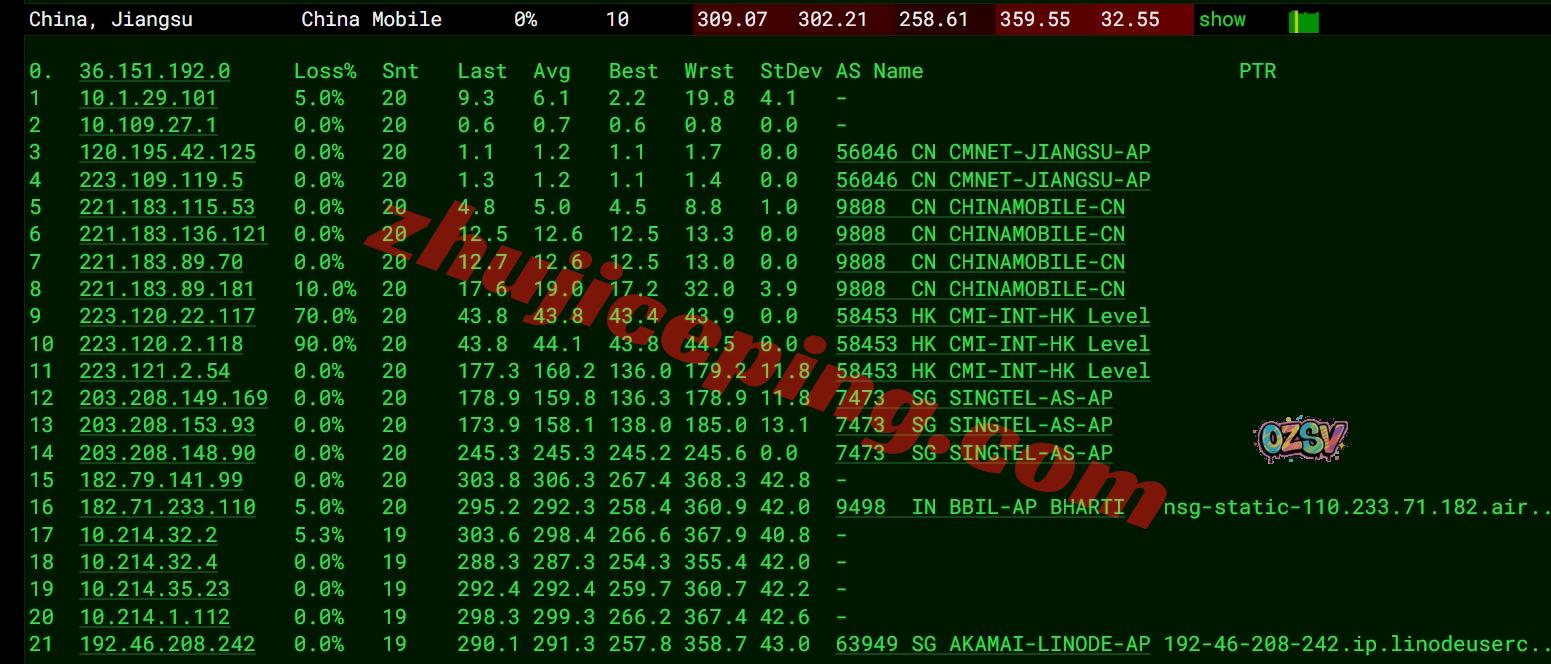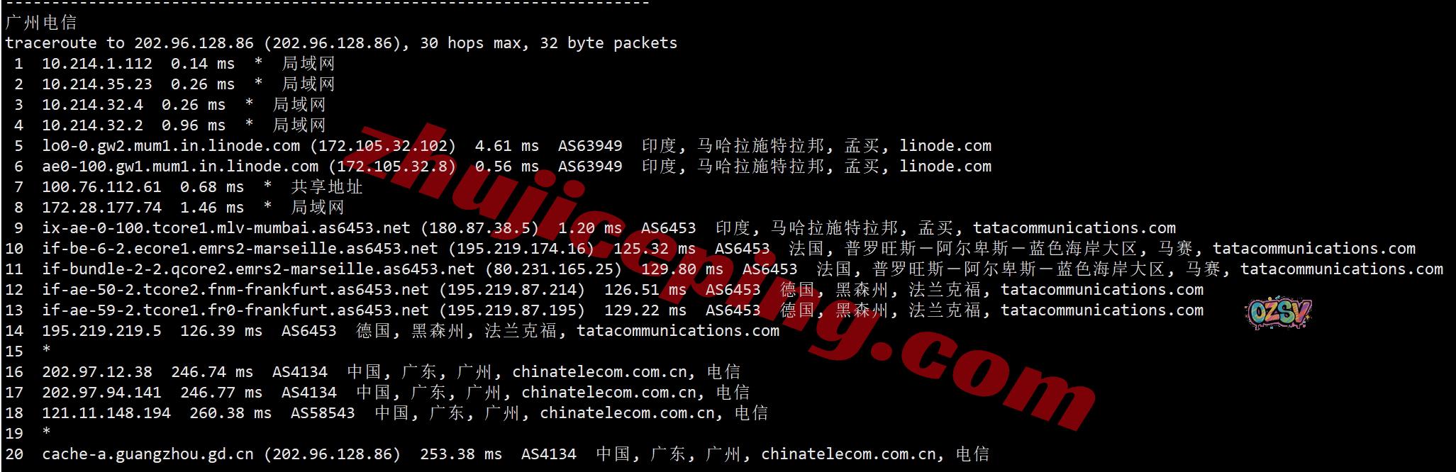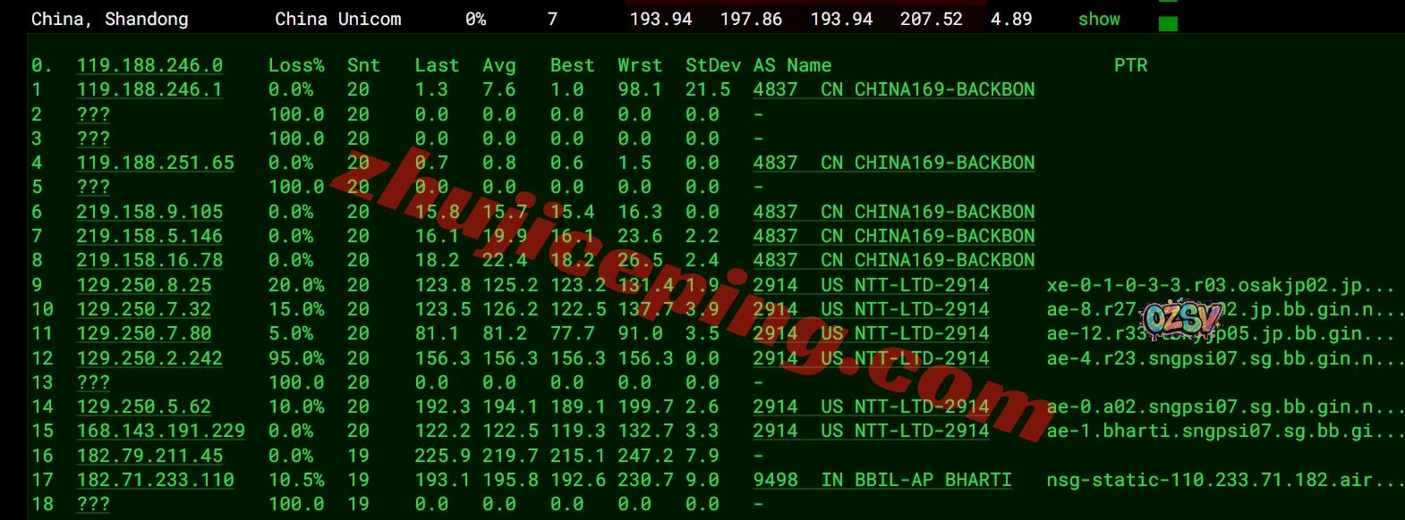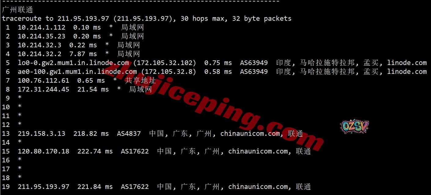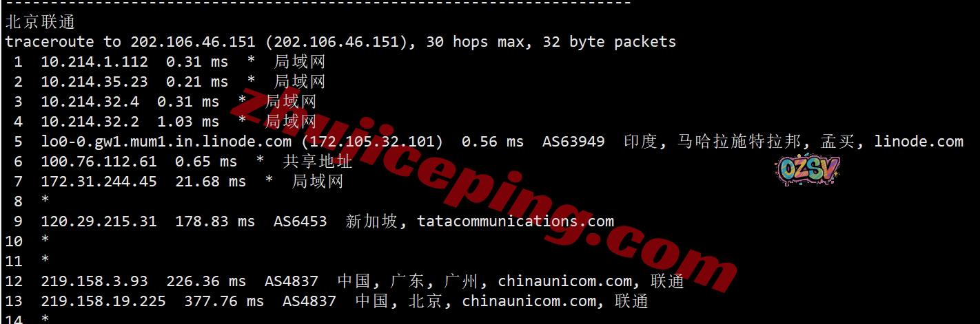 联通去程:联通骨干接NTT经过日本大阪、东京去新加坡然后到印度