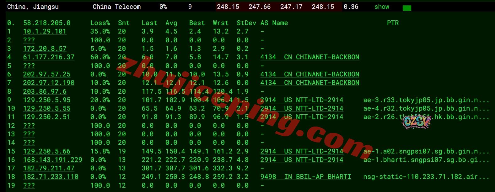 电信去程:电信骨干接NTT经过日本东京过香港去新加坡再到印度