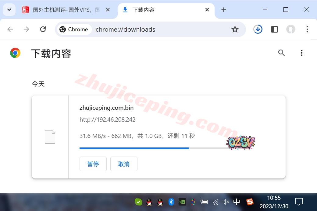 存放在测试云服务器上面的文件,广州联通家宽直接用浏览器下载文件,大致速度如下: