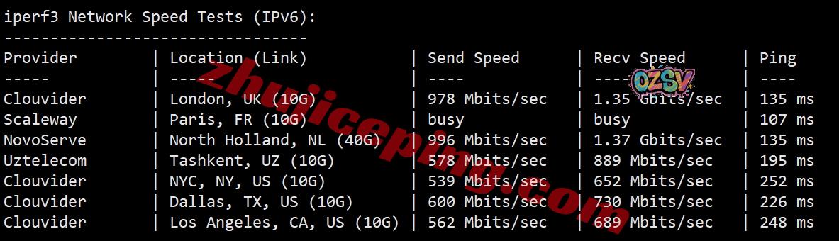 还是iperf3测试,IPv6环境下了,大致测试数据:
