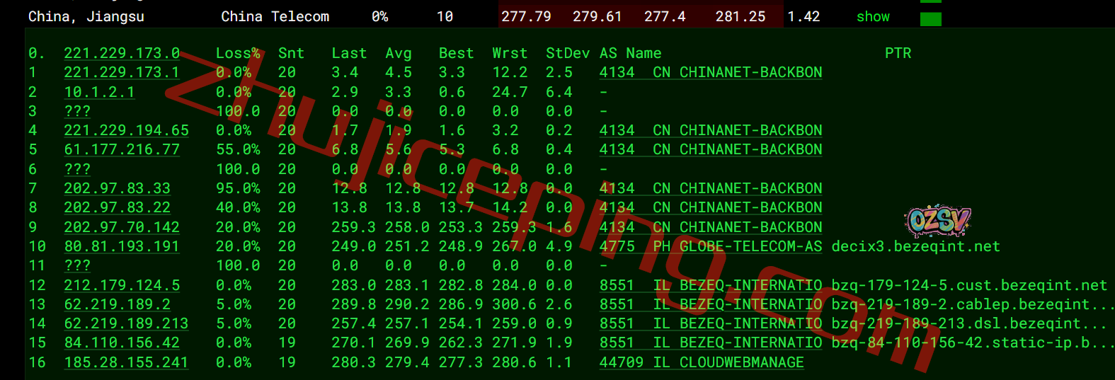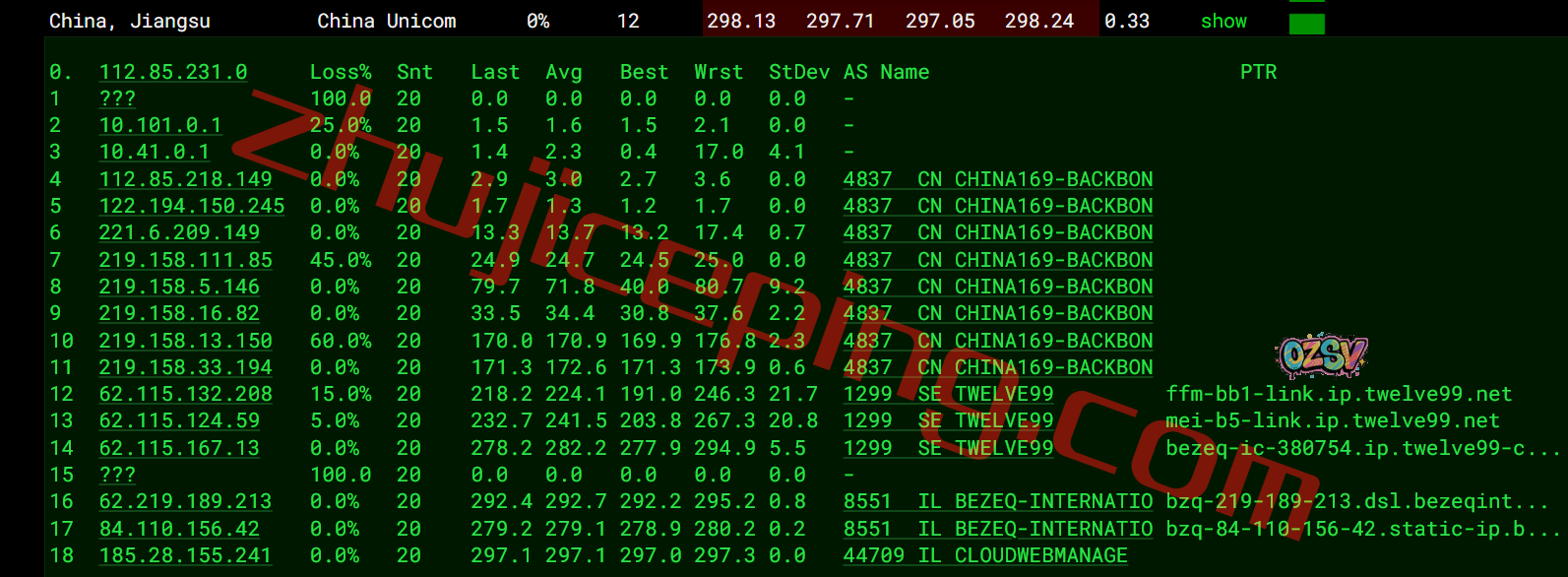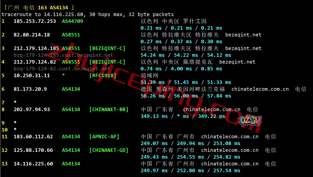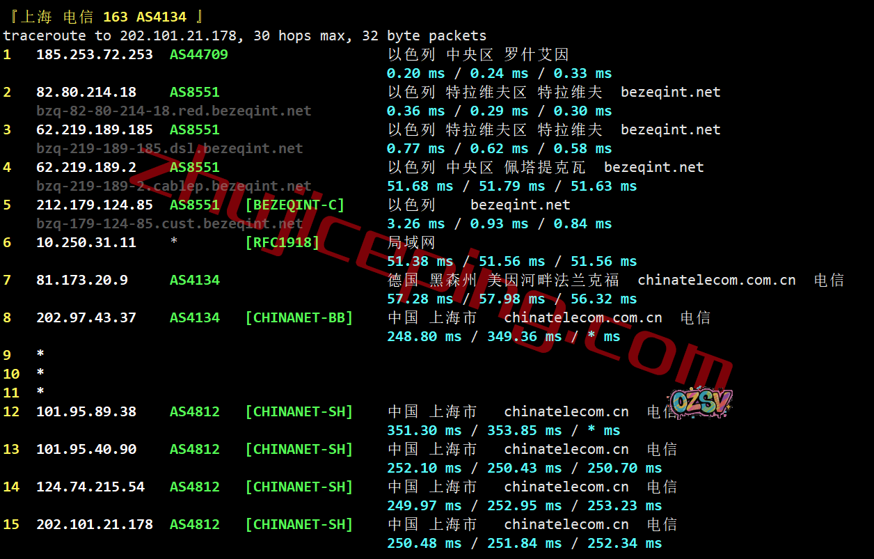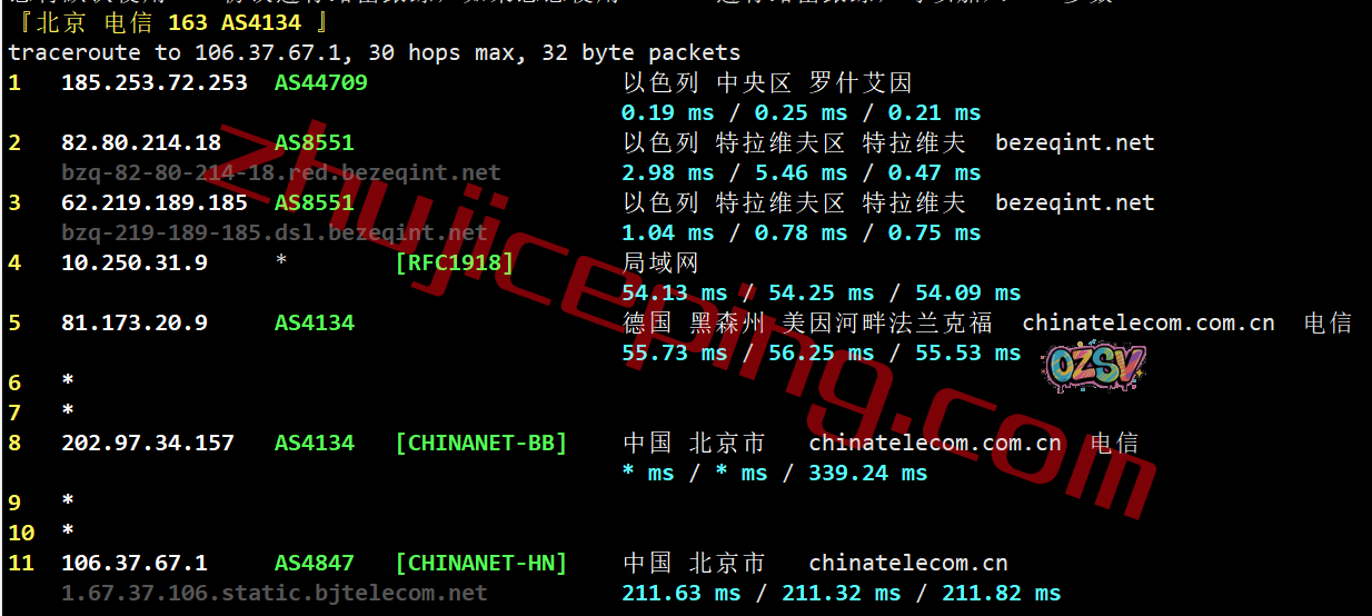 电信回程:走bezeqint到德国,从电信法兰克福节点直连回国