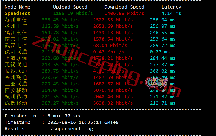 用国内节点跑一圈,看看上下行带宽可达到多少吧,大致如下: