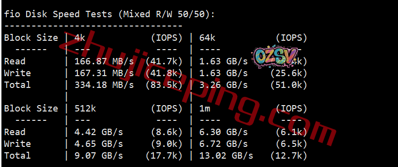 FIO测试读写的大致数据如下: