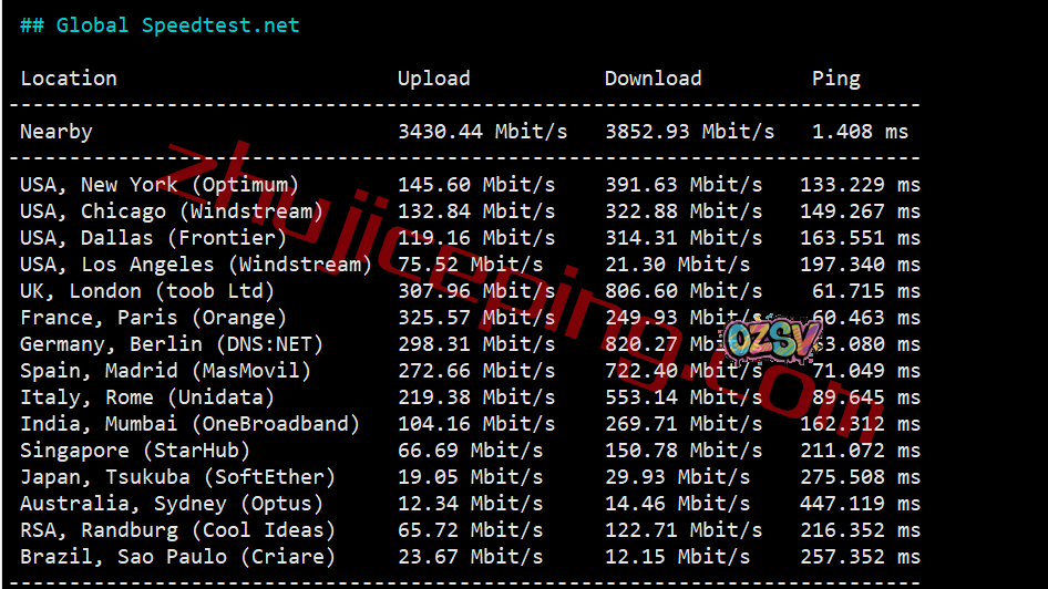speedtest的部分国际节点的大致数据: