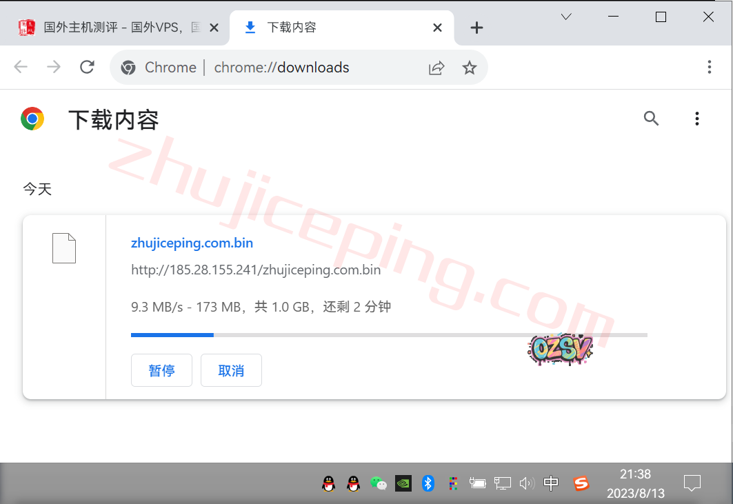 存放在测试云服务器上面的文件,广州联通家庭带宽直接下载,大致速度如下: