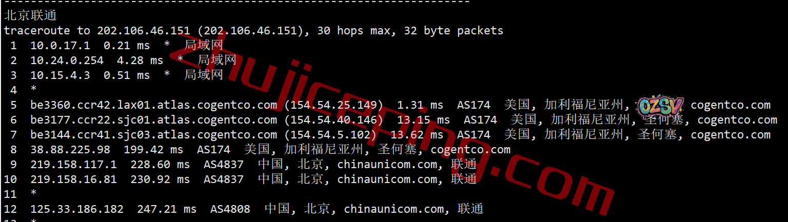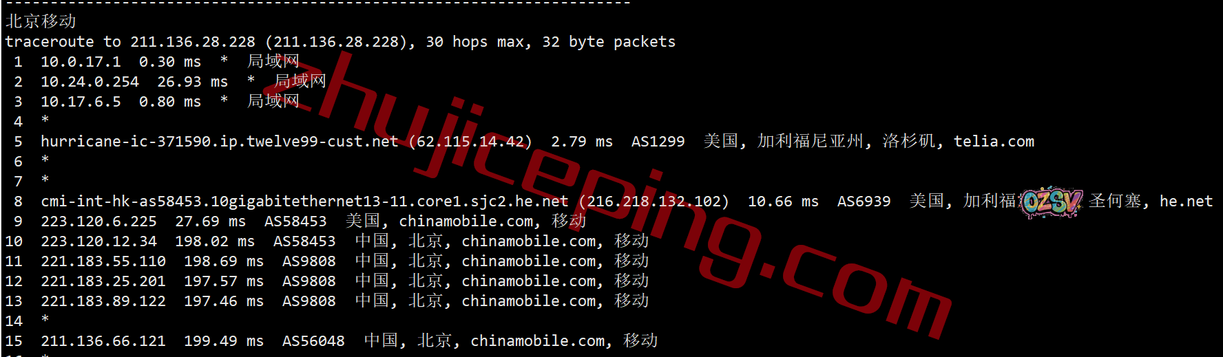 北京、上海方向:走he或者cogent到圣何塞,然后从移动圣何塞节点直连回国