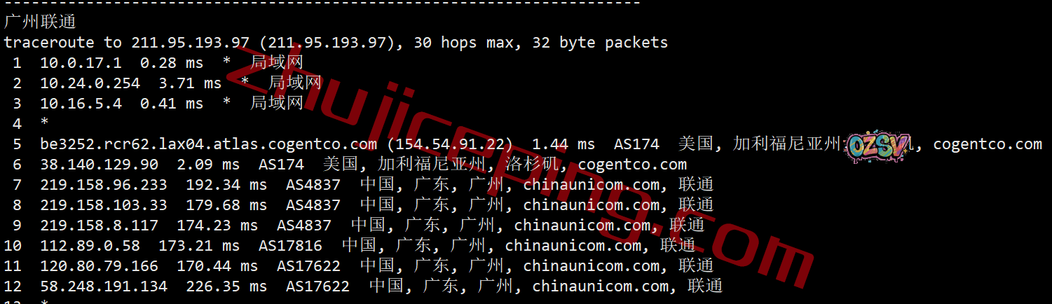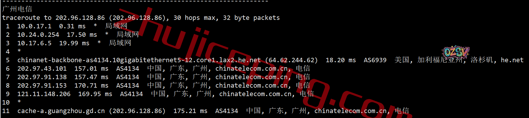 广州方向:走电信与HE在洛杉矶的pop直连回国