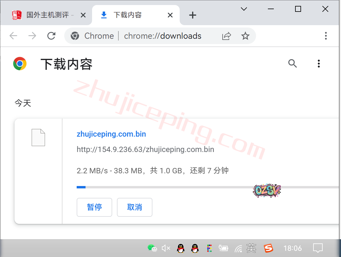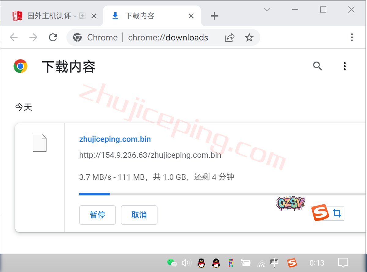 存放在测试小鸡上面的文件,广州电信家庭带宽直接用浏览器下载,大致速度如下: