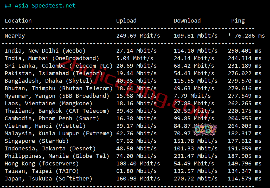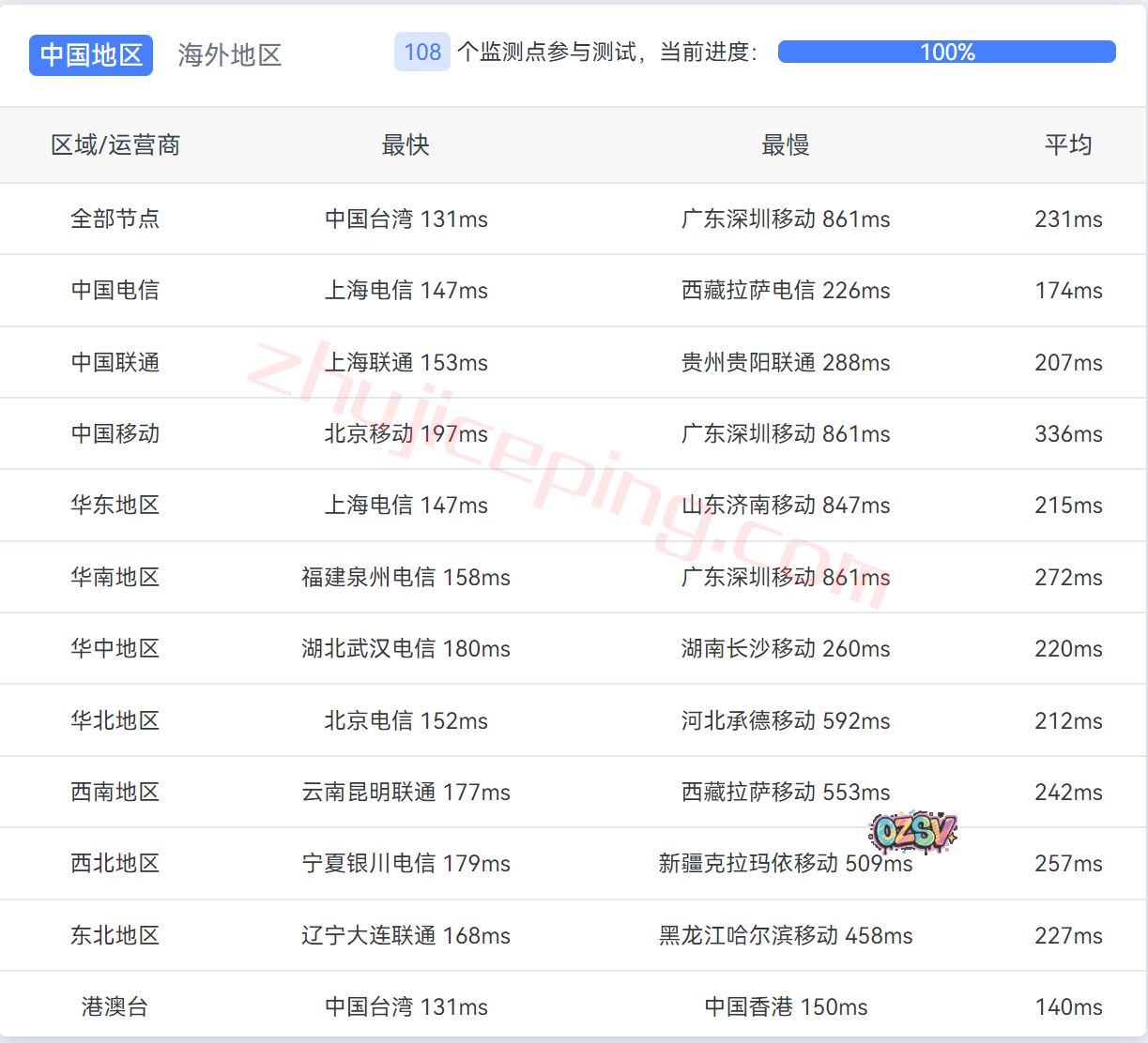 speedtest在国内的三网节点跑一下带宽的上下行,看看可以达到多少吧? 大致测试数据: