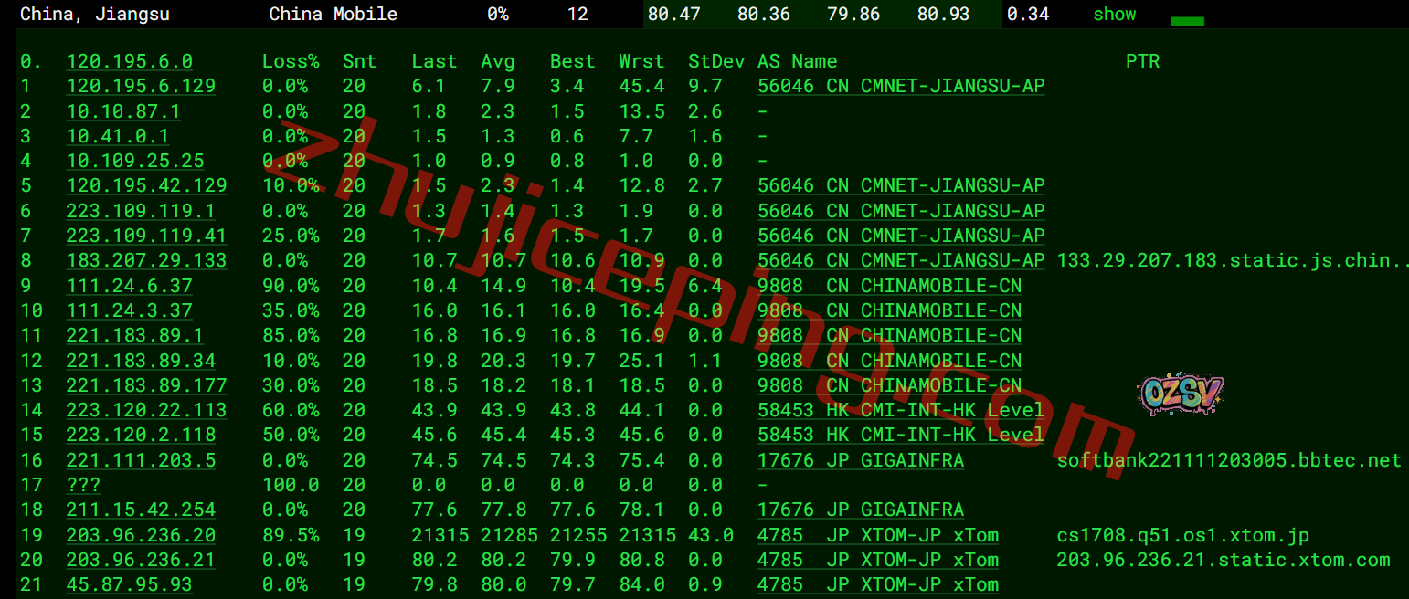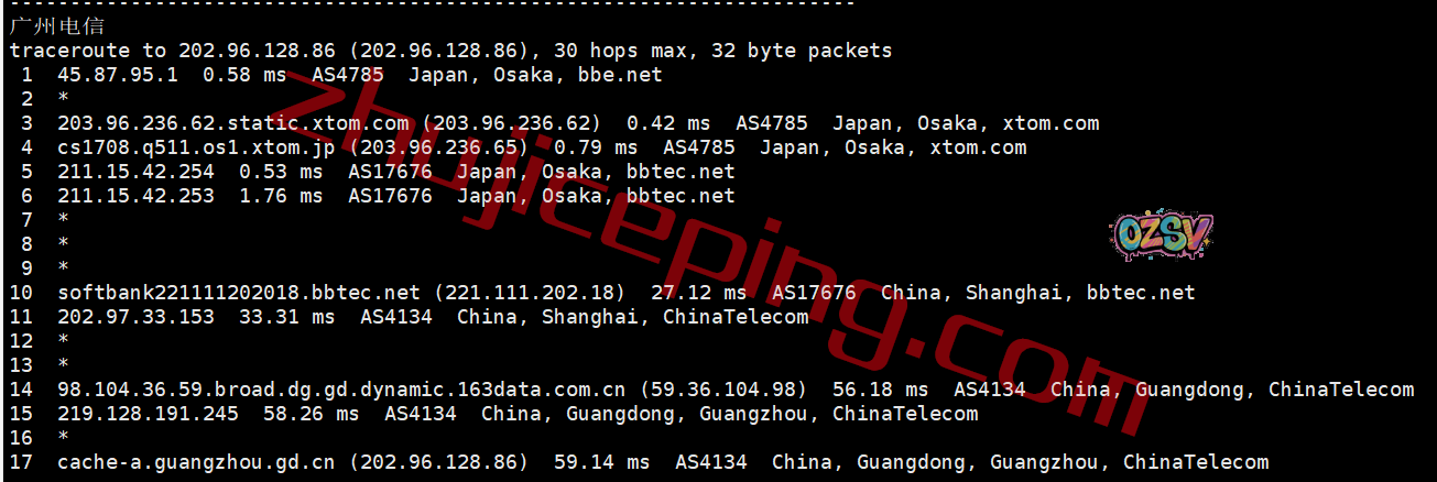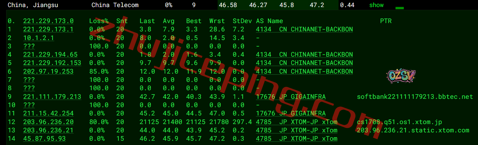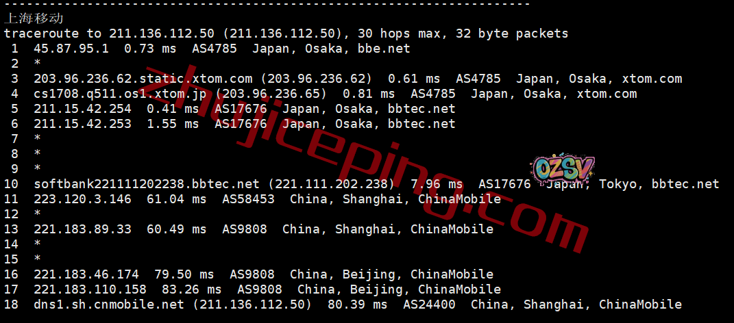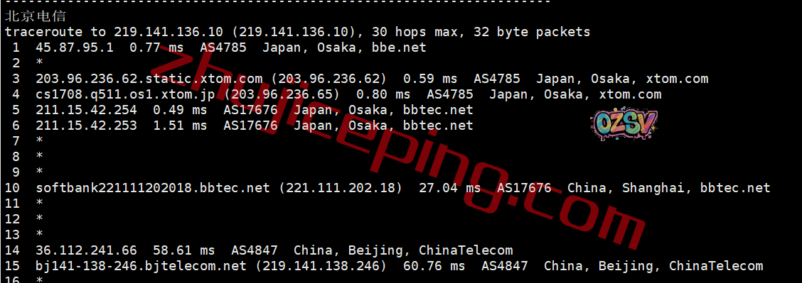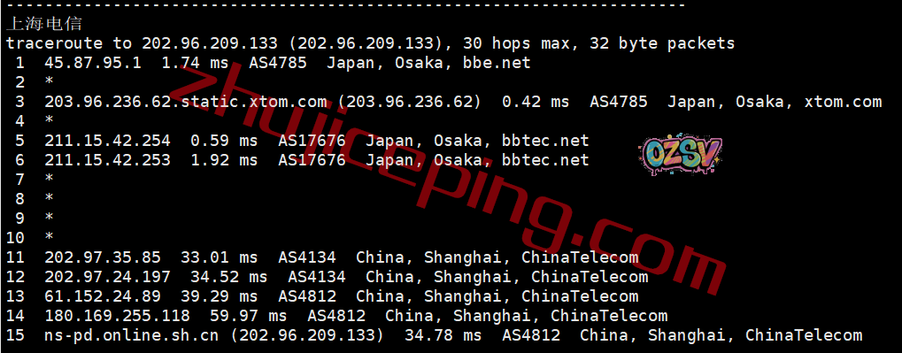 电信回程:走的是日本软银从上海入口进来