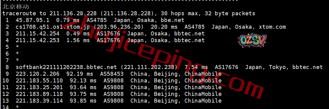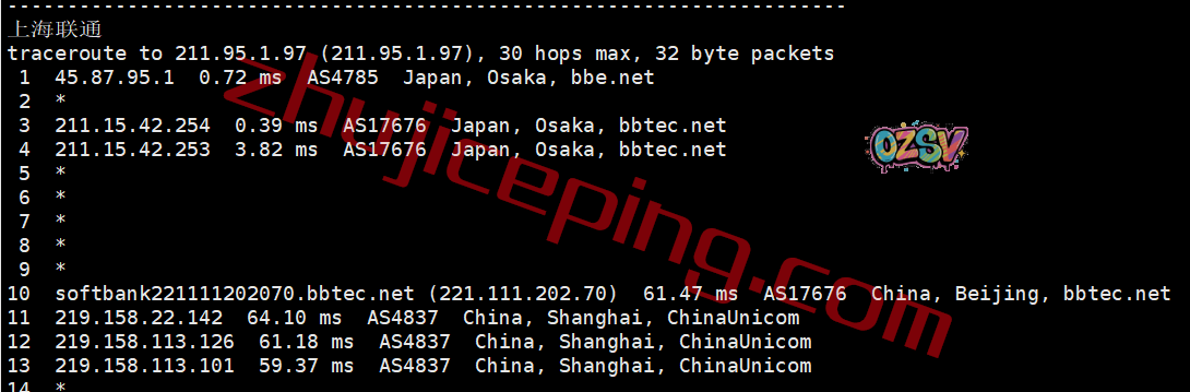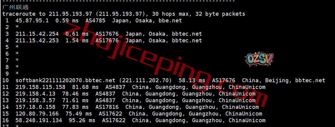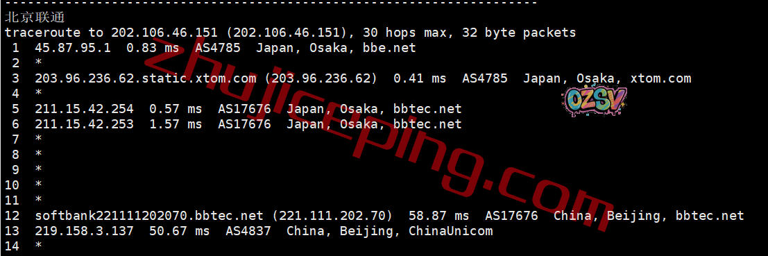 联通回程:走的是日本软银线路从北京入口回国