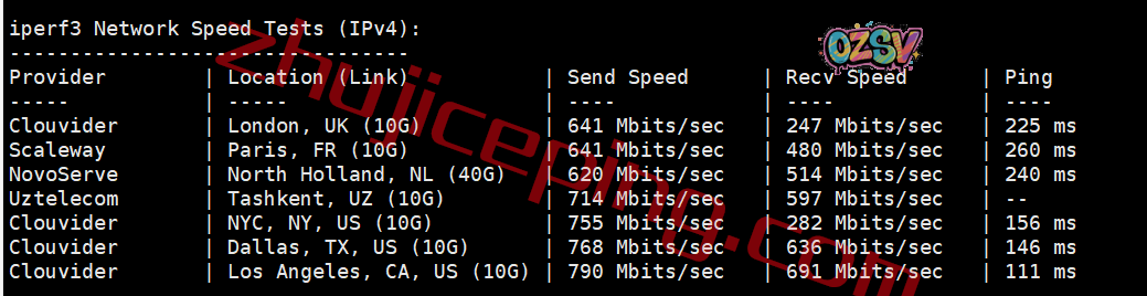 再看看iperf3测试几个欧美节点的效果: