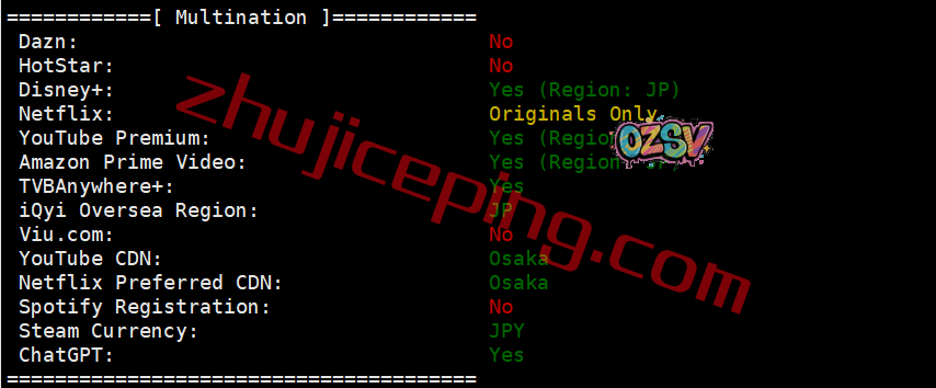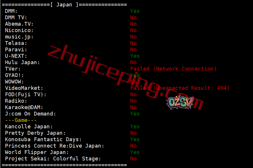 部分日本流媒体解锁测试: