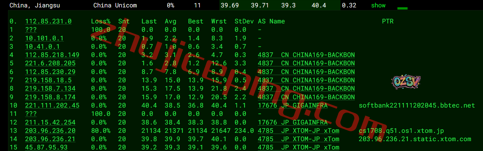 联通去程:联通骨干接日本软银