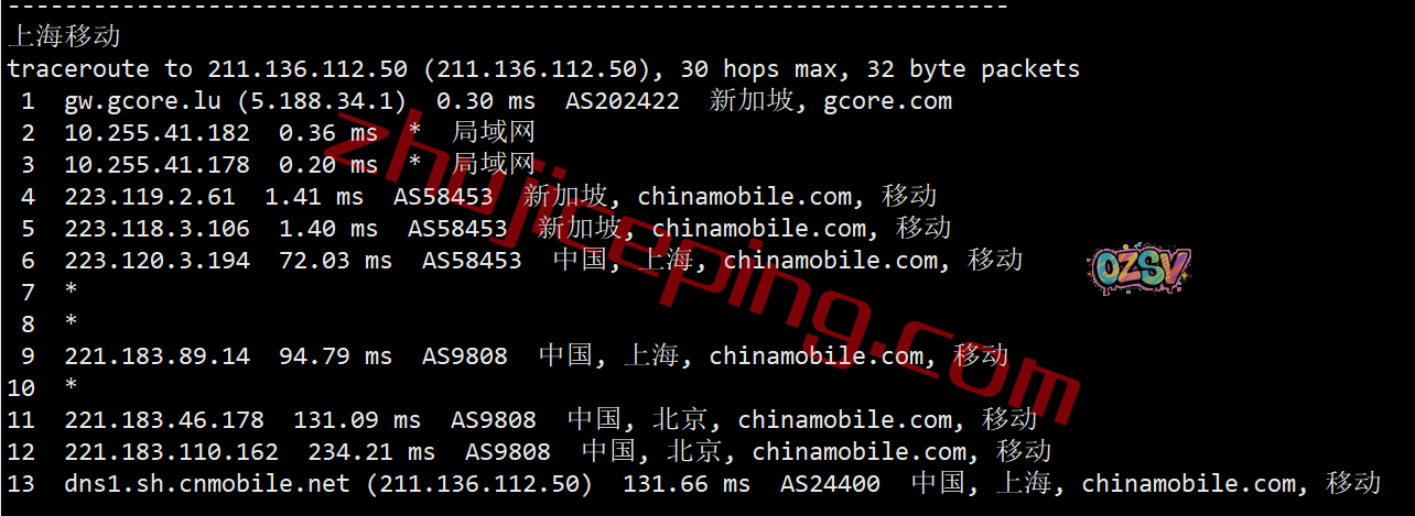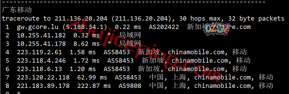 上海、广州方向:从移动新加坡节点直连回国