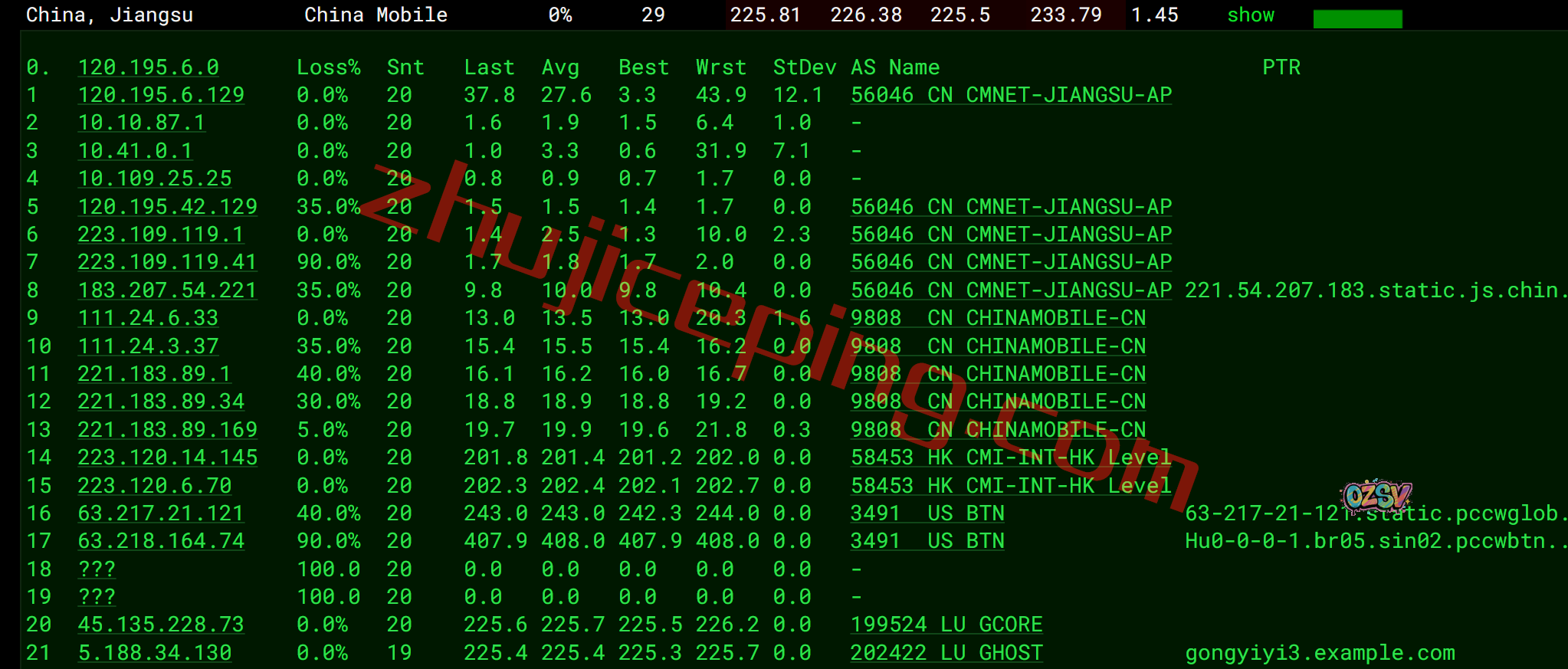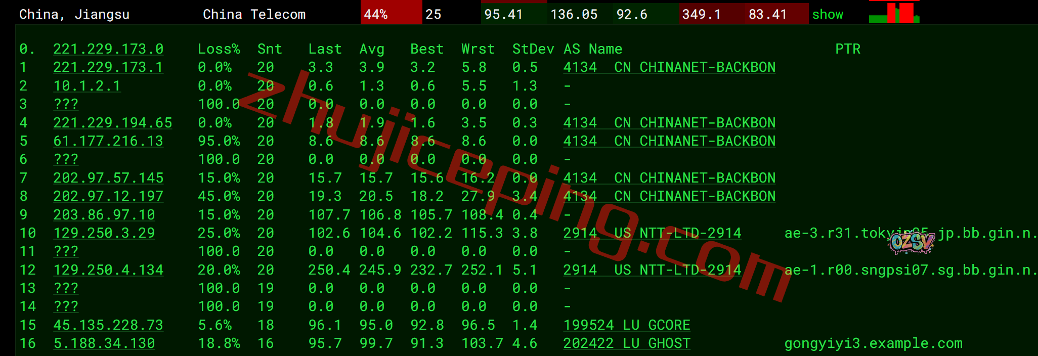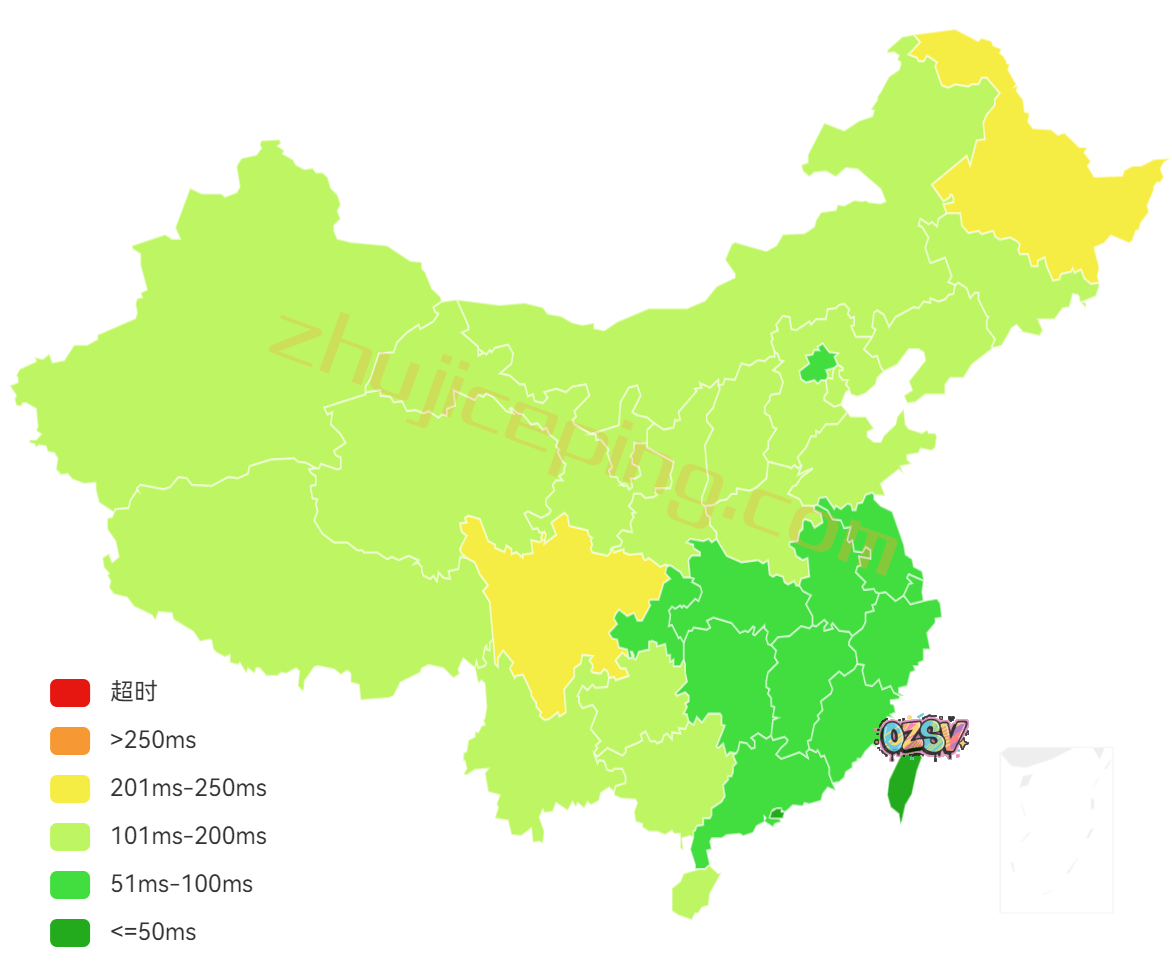 国内三网多个节点的延迟测试数据:
