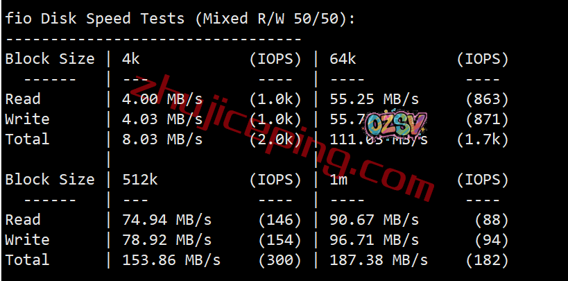 VPS性能测试,部分数据如下: