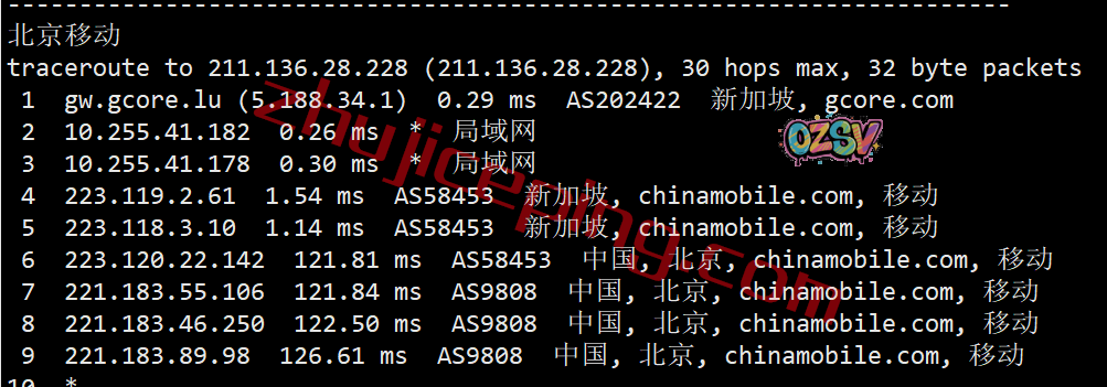 移动去程:走CMI直连移动洛杉矶节点然后走pccw去新加坡