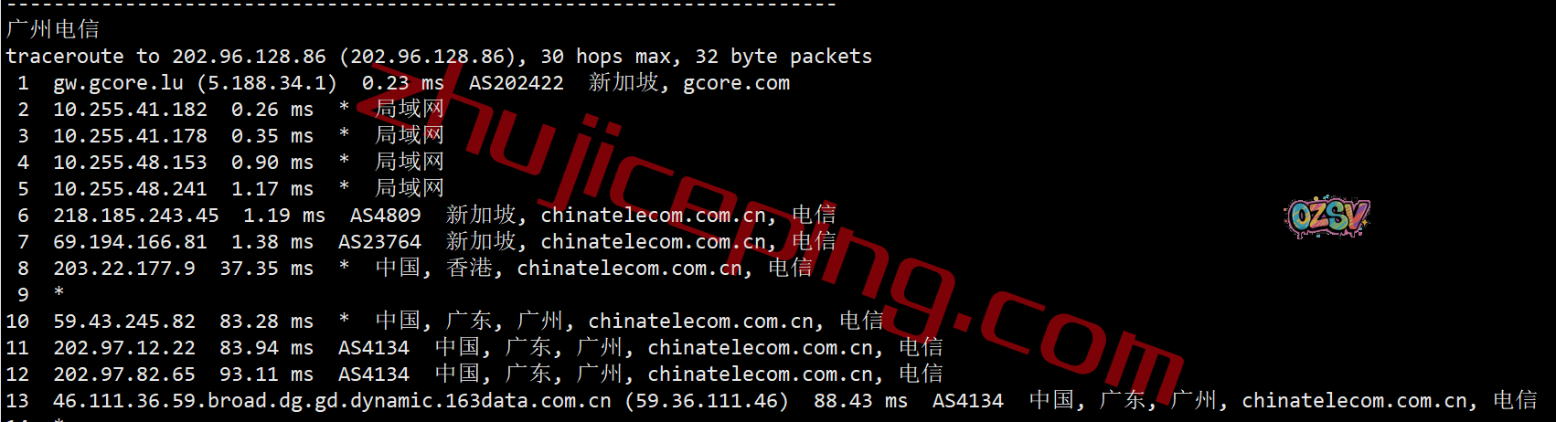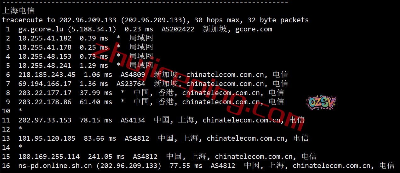 电信回程:从电信新加坡节点直连香港电信再回内地电信