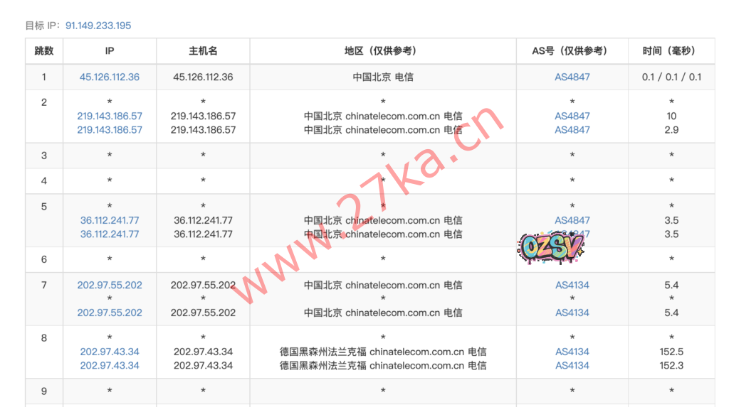 2 ancotel.GM-FF-FRK-F-2.163.chinatelecomeurope.com (80.81.195.33) 3.71 ms * Germany, Hesse, Frankfurt, de-cix.net
