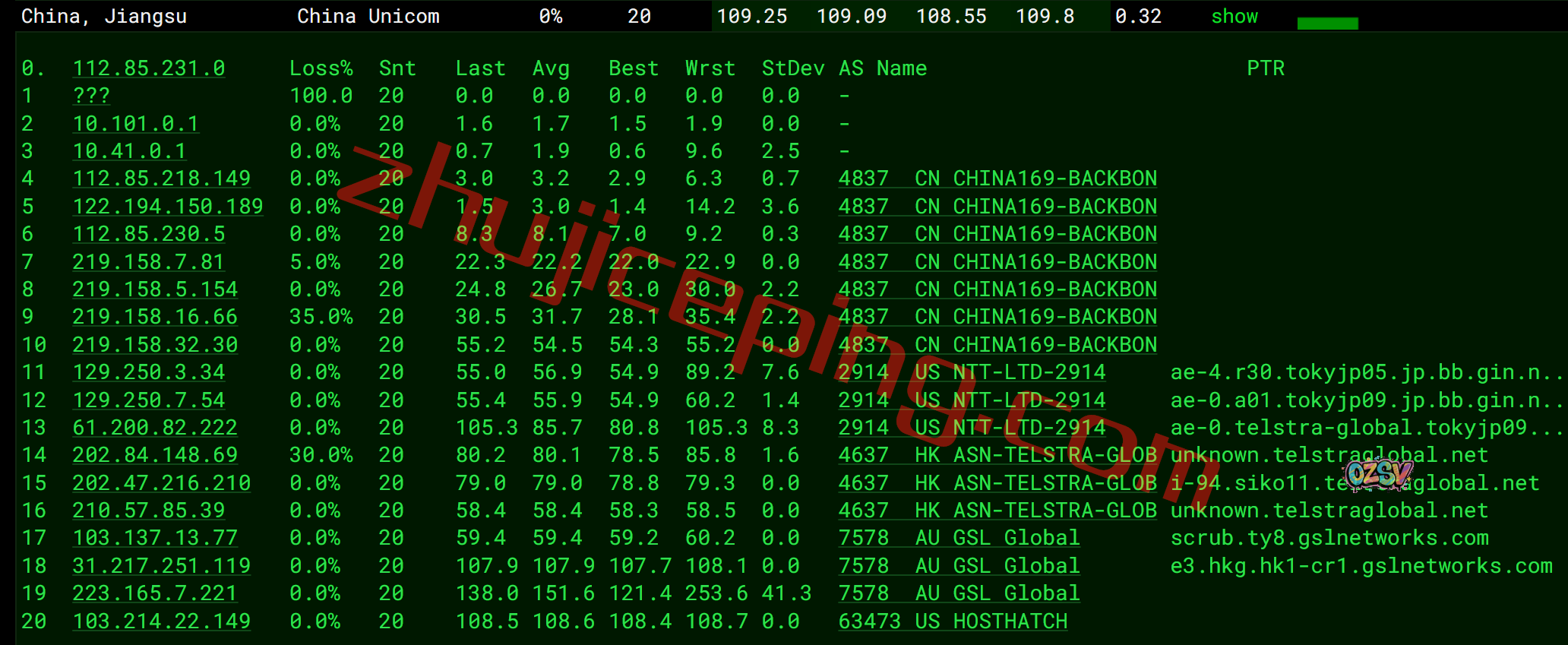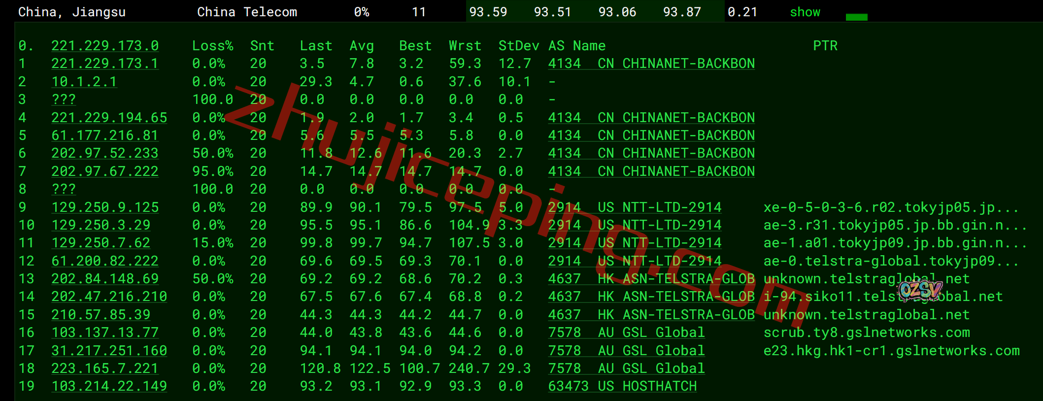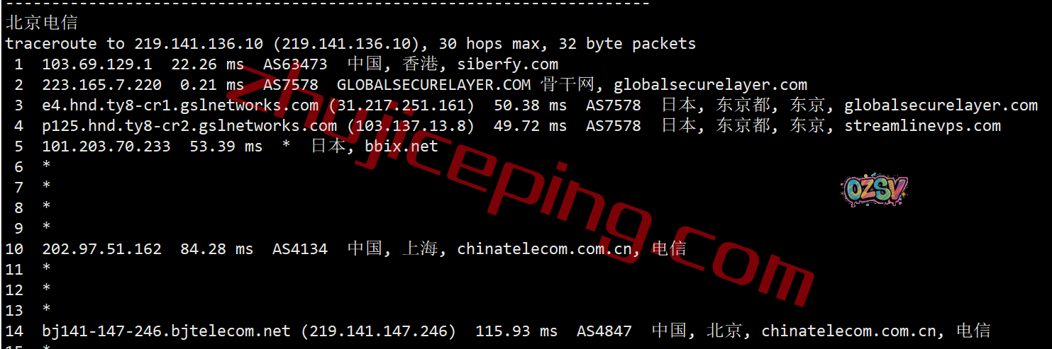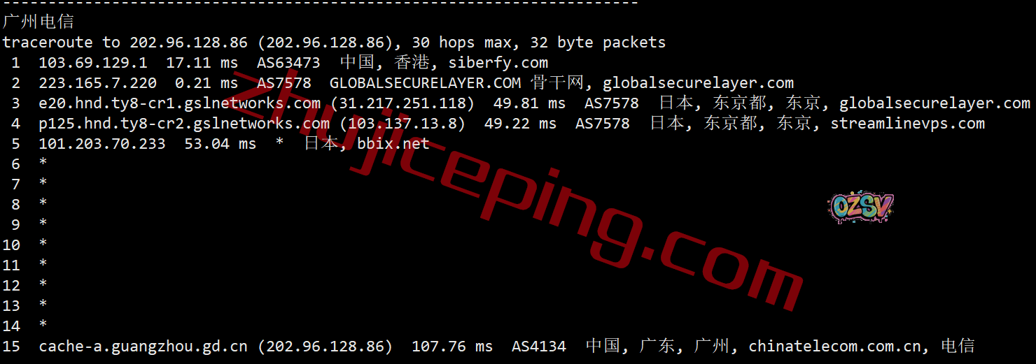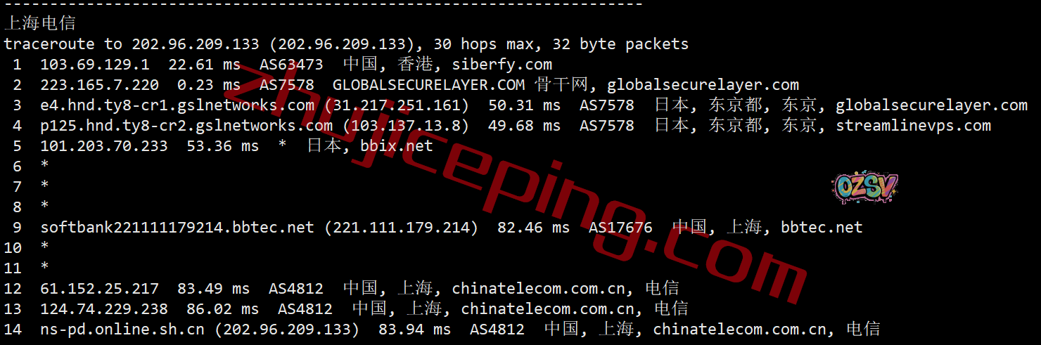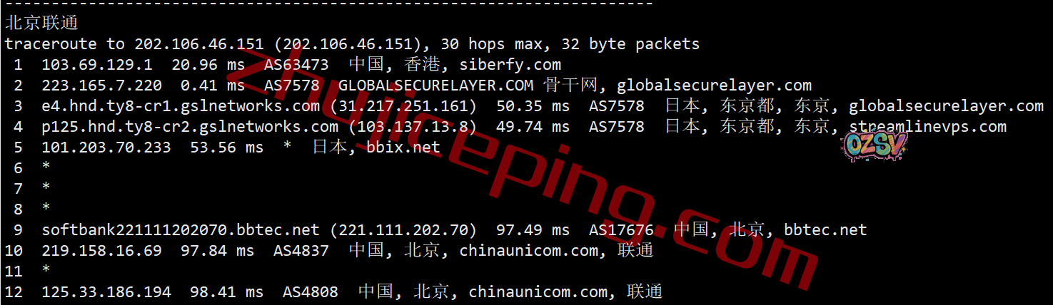 电信回程:走gslnetwork绕道了日本再走软银旗下的bbix回来