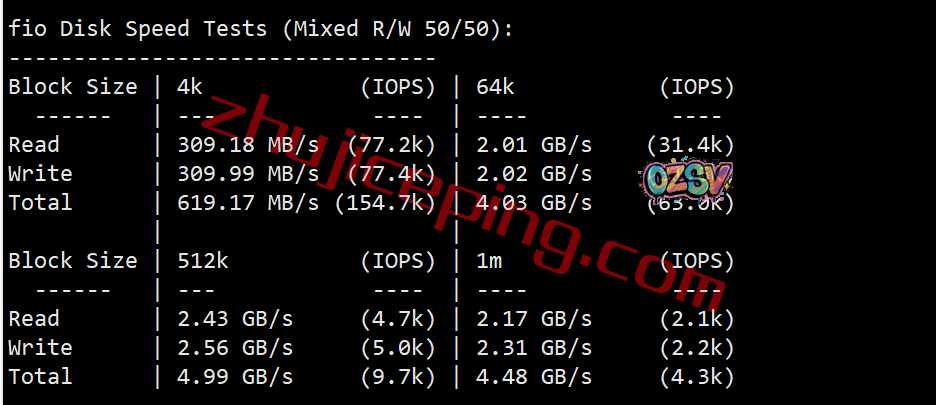 FIO测试读写的数据大致如下: