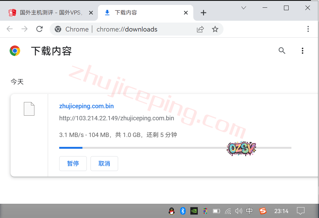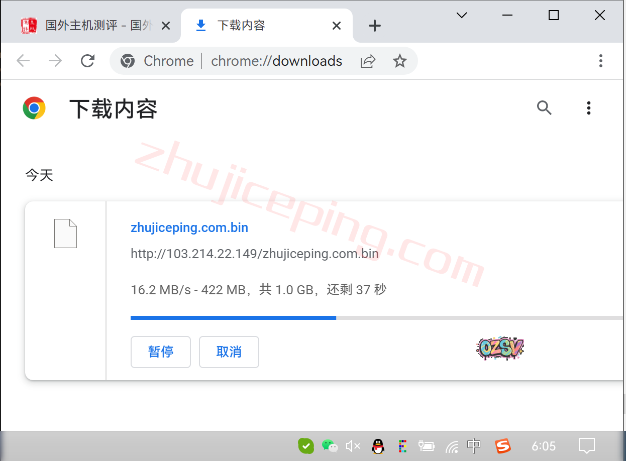 存放在测试小鸡上的文件,广州电信家庭带宽,浏览器直接下载,大致速度: