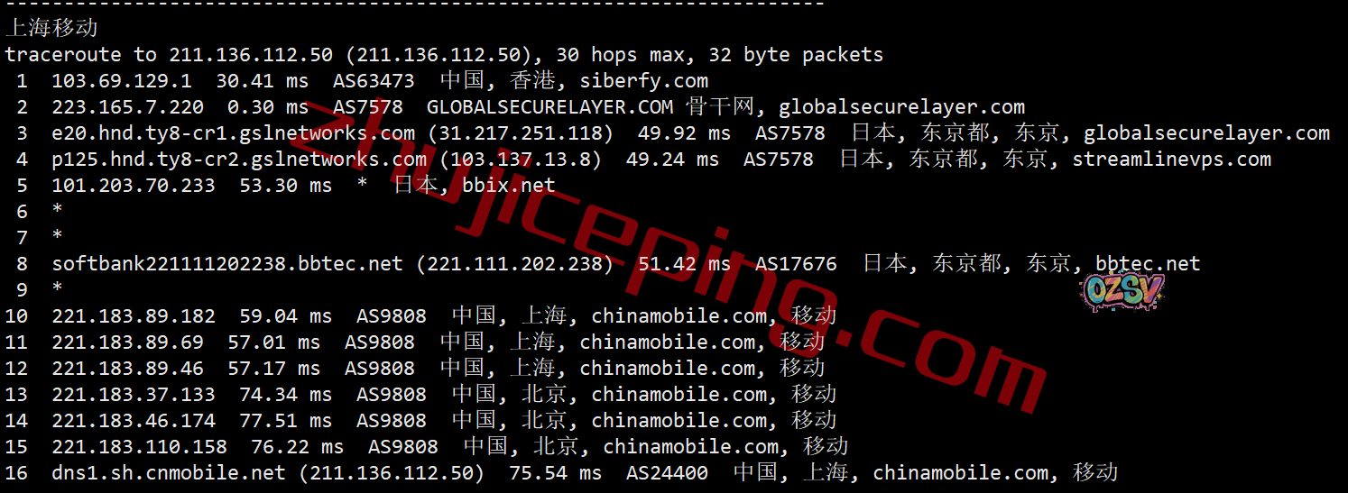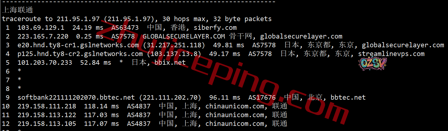 上海方向:走gslnetworks绕道日本后经过软银回来