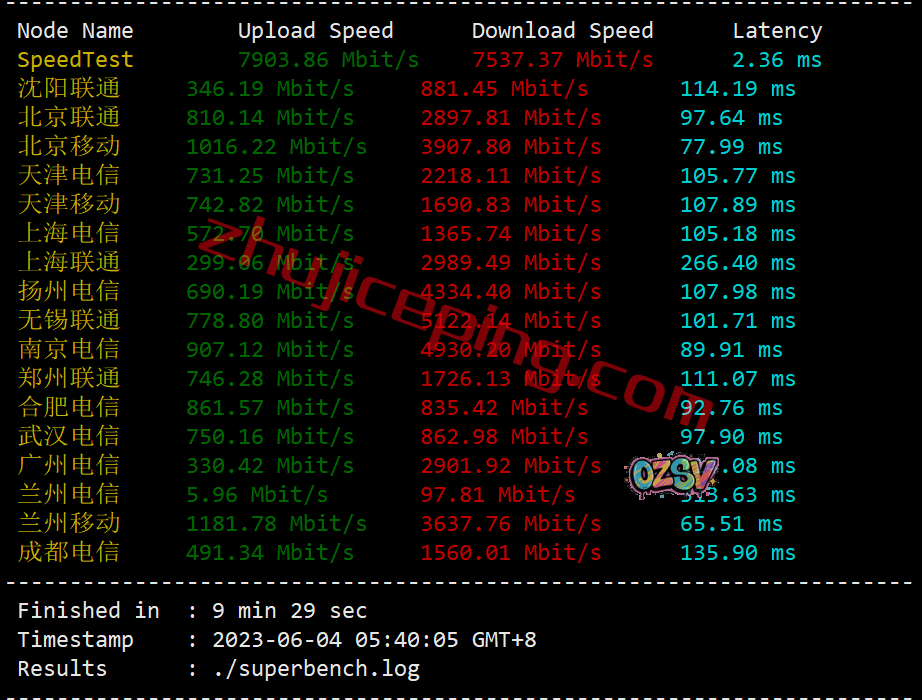 我们来测试下带宽的情况,speedtest在国内的三网不同节点,跑一下上下行,大致数据: