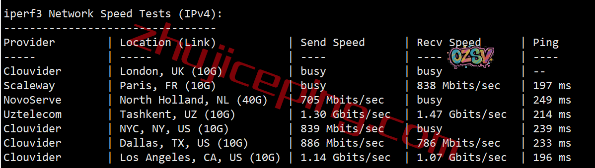 iperf3测试欧美节点的数据: